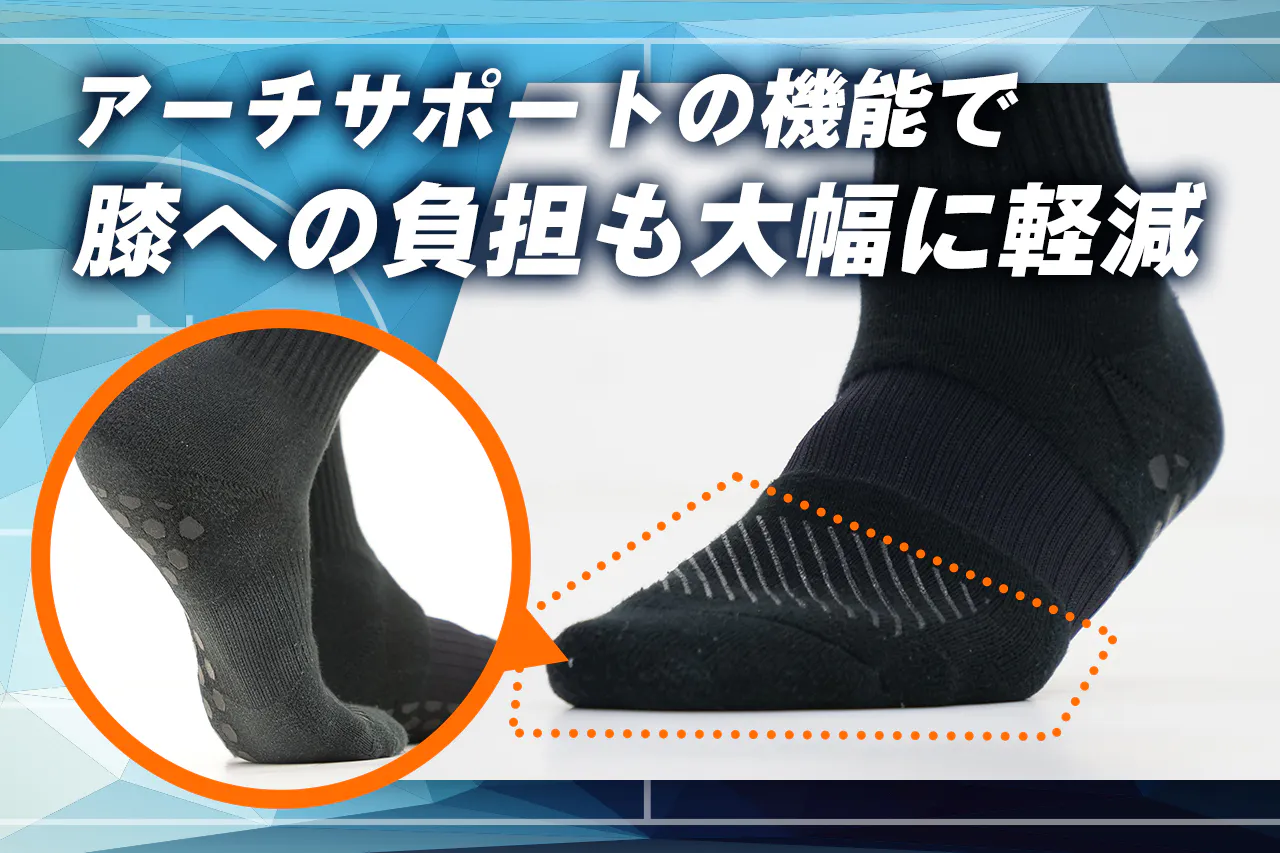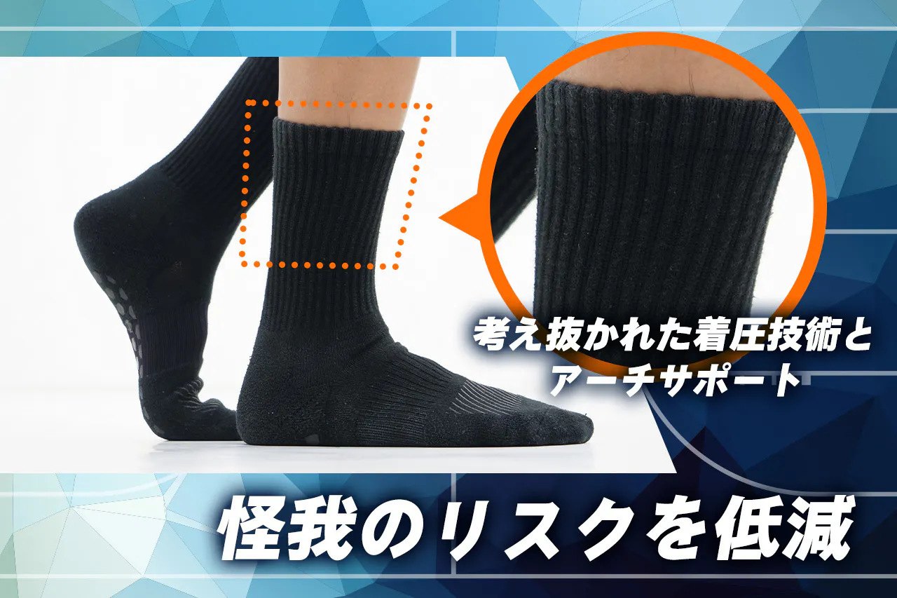 さらにソックスの滑り止め機能も、怪我のリスクを大きく減らしてくれます。