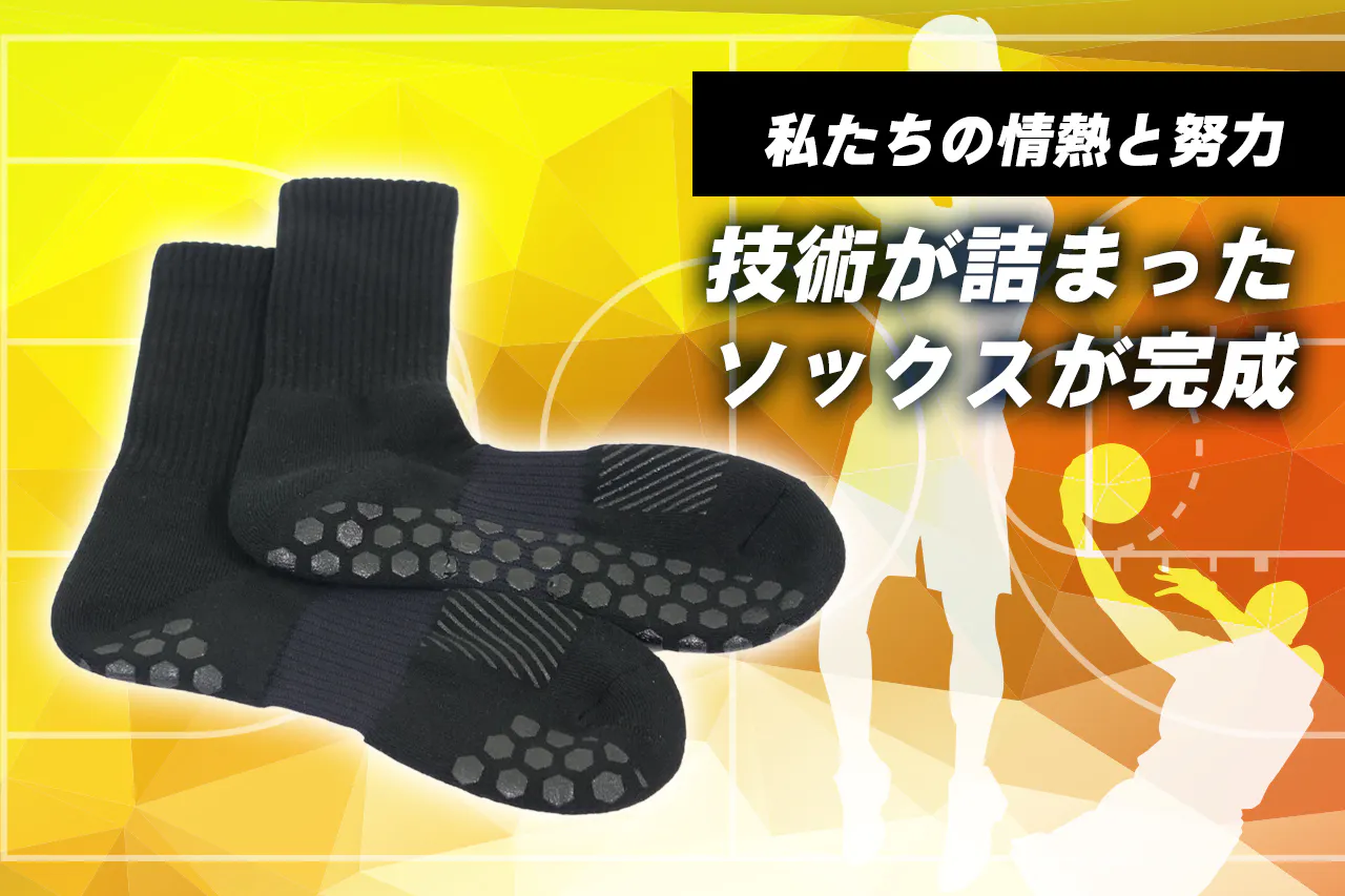ぜひこのバスケ専用ソックス『Grip Socks(グリップソックス)』を製造し全国的に広げていくための最初のご支援をお願いいたします。