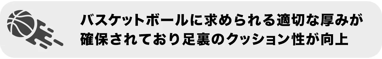 基本機能の一つとして、バスケ専用に設計された独自の厚みです。