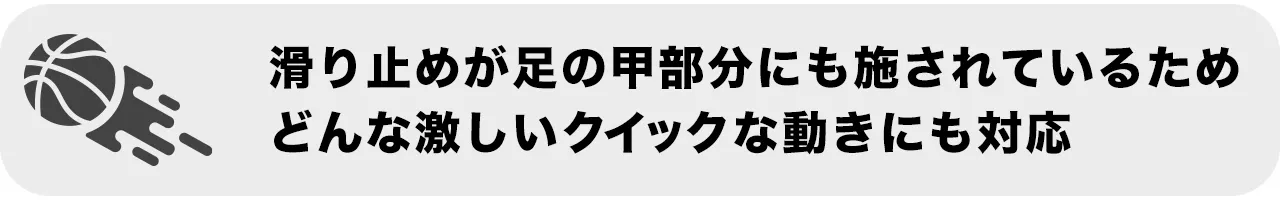 また、バスケ用ソックスでは珍しく「足の甲部分」にも滑り止めを付けています。