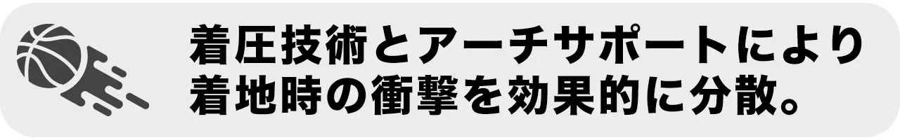 また、考え抜かれた「着圧技術」と「アーチサポート」を取り入れることで、着地時の衝撃を分散させることが可能となりました。