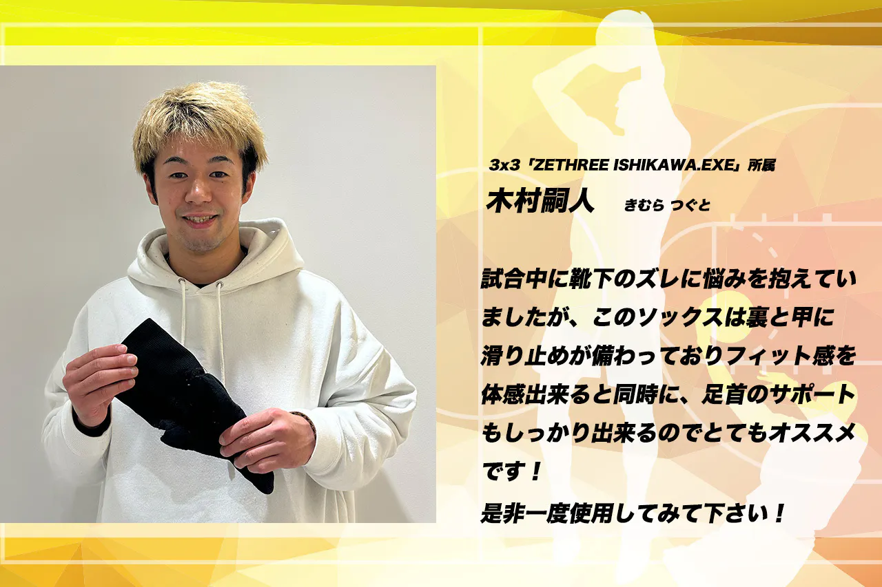 私もその一人として、その舞台に立ち世界のトッププレーヤーたちに挑戦し続けてきました。そしてこのソックスはFIBA 3x3 World Tourという大舞台でも、しっかりとその期待に応えてくれました。