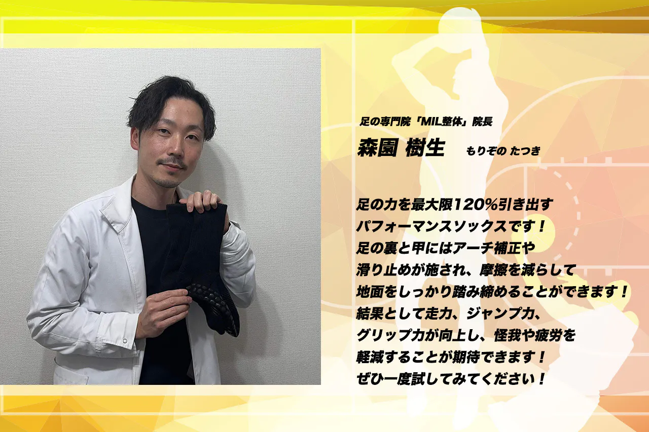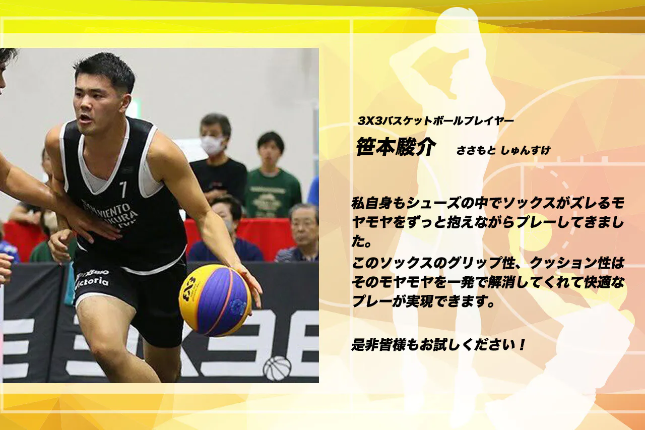 5人制・3人制問わず、バスケットボールの様々なシーンで、真にバスケに特化したソックスの開発を行うことで、多くのプレイヤーの足元の悩みを解決したいという思いがあります。