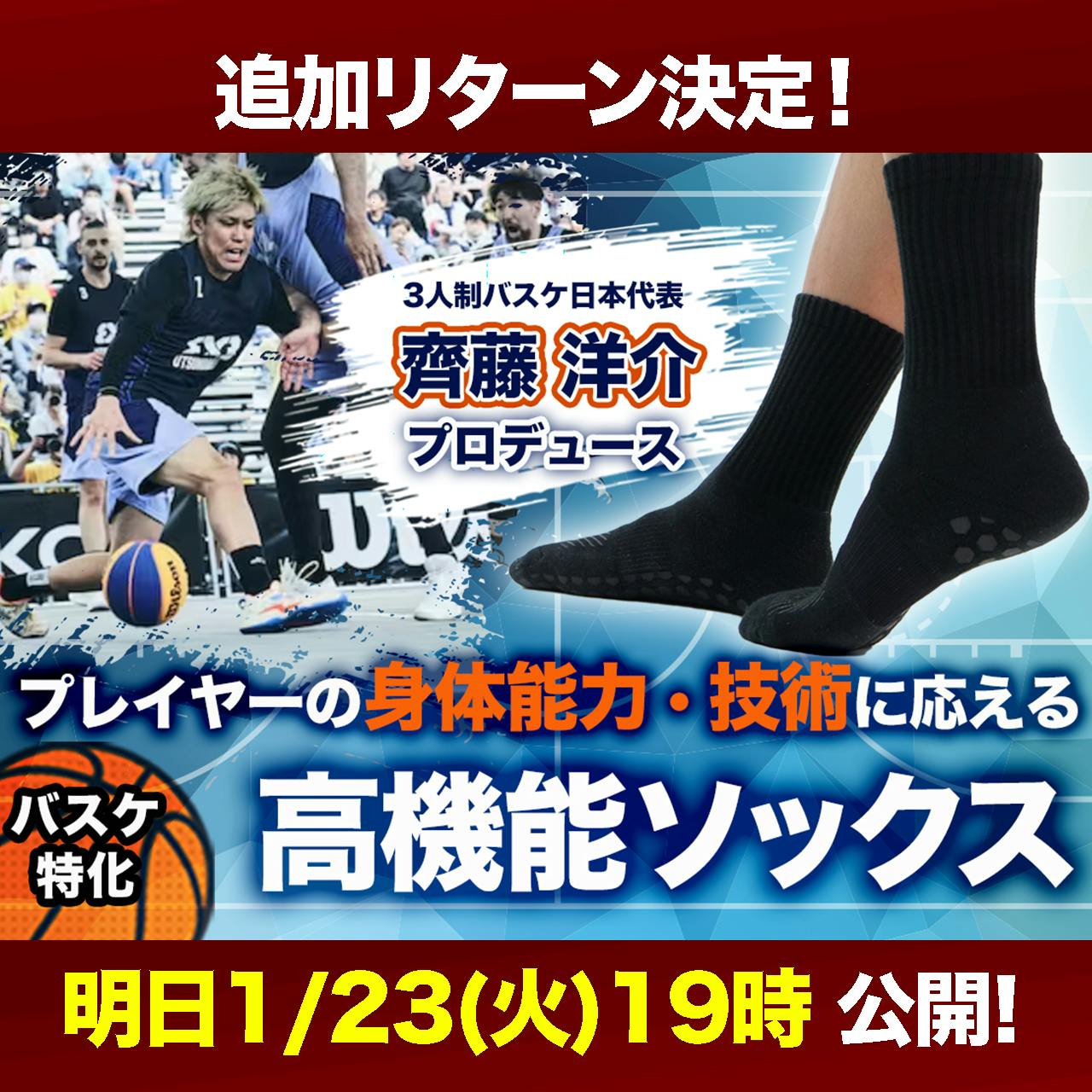 【最後のリターン 追加します! 明日1/23(火)19時公開!】バスケ専用ソックス「齊藤洋介」