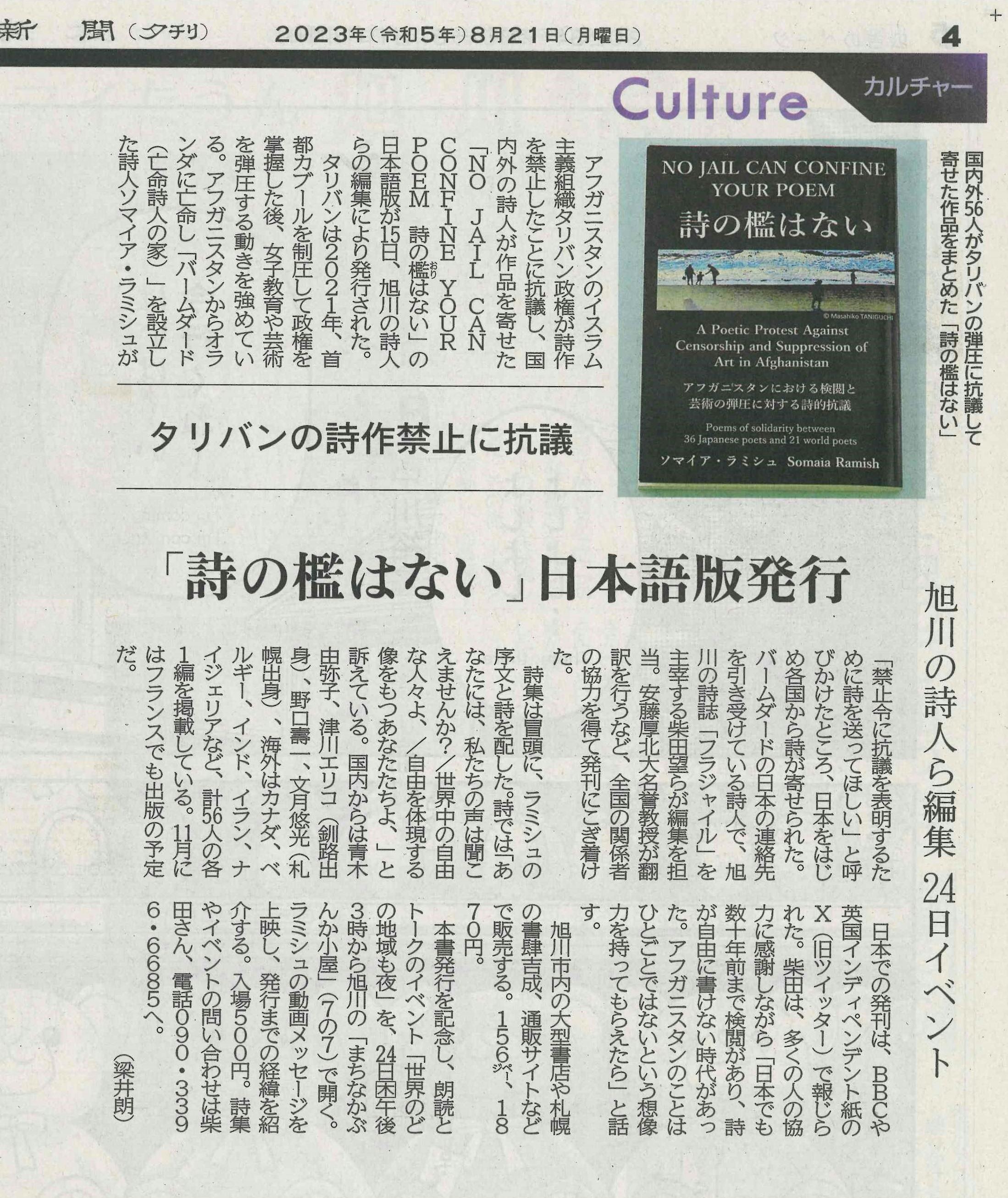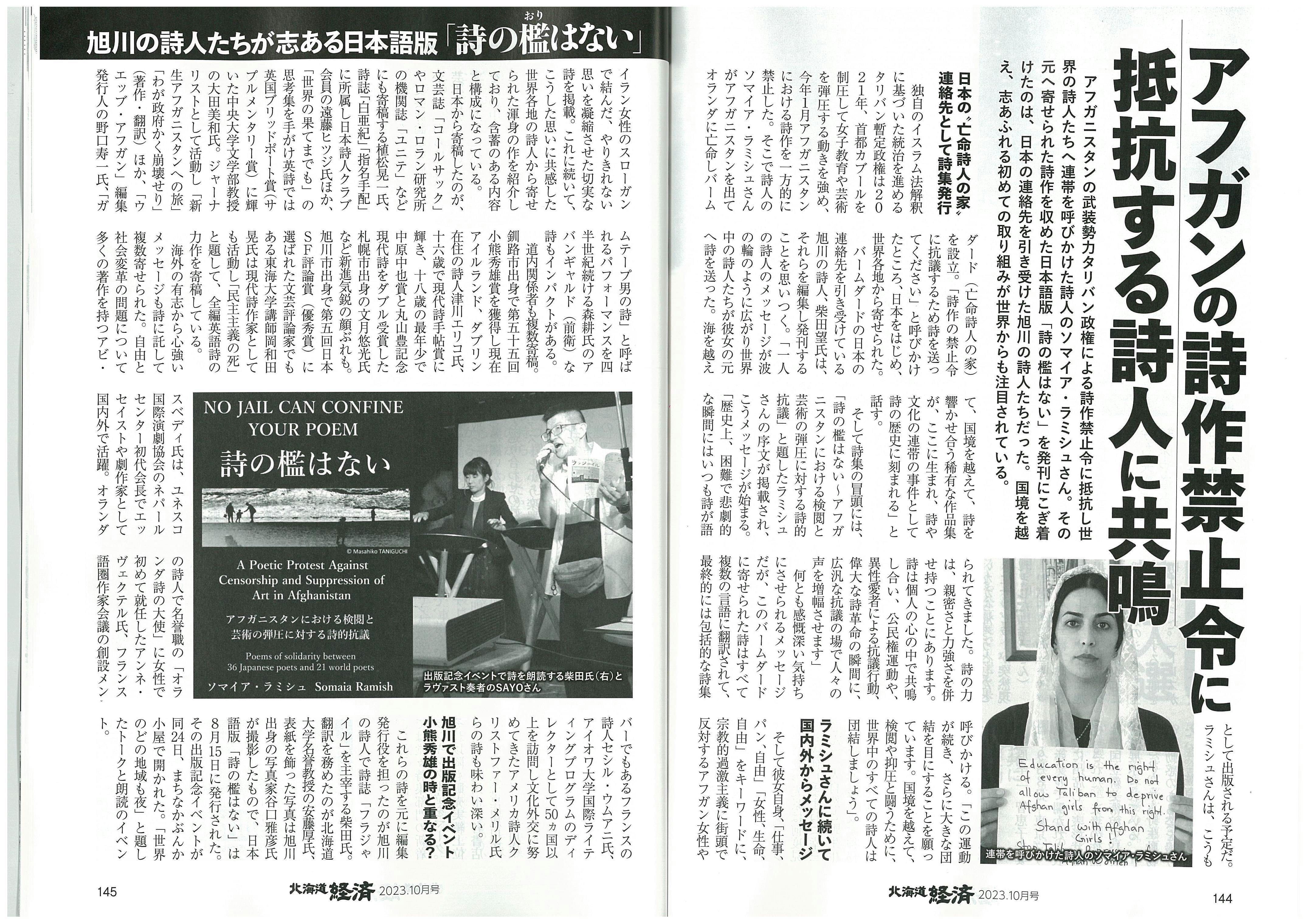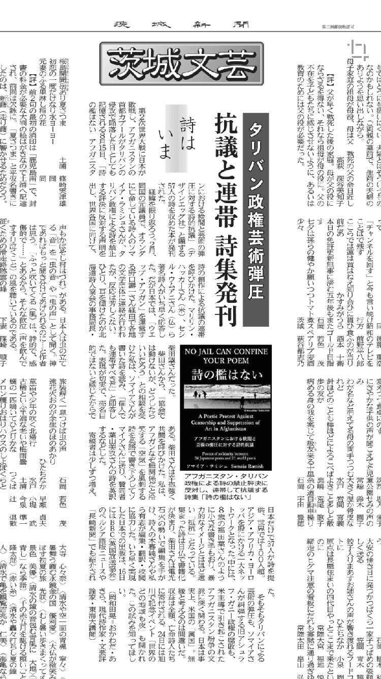 *アンソロジー『NO JAIL CAN CONFINE YOUR POEM 詩の檻はない:~アフガニスタンにおける検閲と芸術の弾圧に対する詩的抗議』(A5サイズ・156頁)(デザインエッグ社・2023年8月発売)