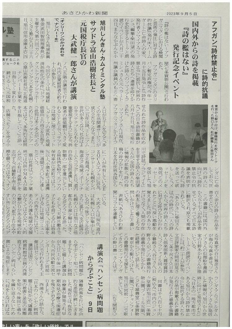そして、その発信を日本の詩人や詩団体へ拡散してくださったのがWebマガジン【ウエッブ・アフガン】を編集する野口さんです。
