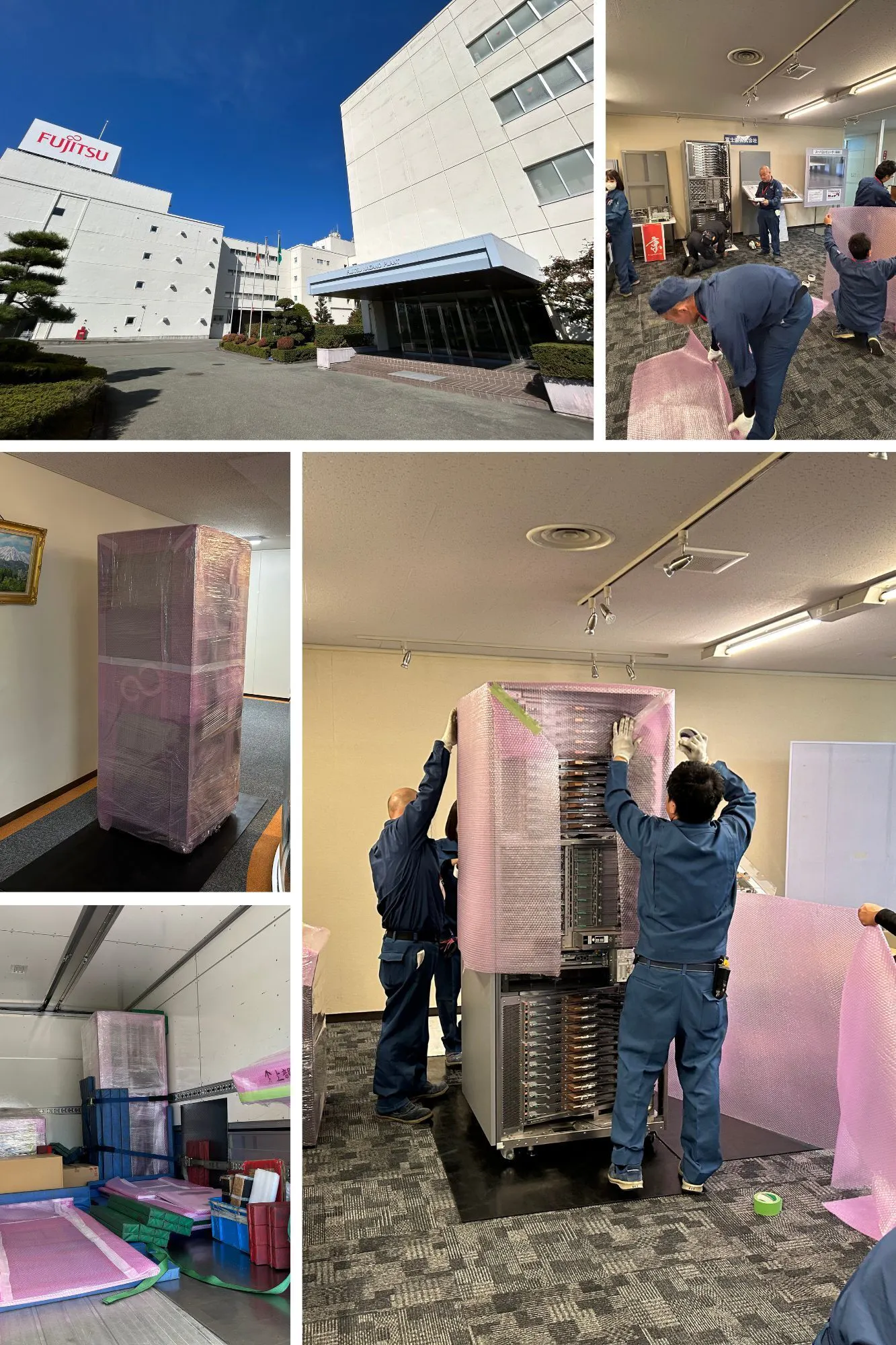 2023年10月18日に今回譲渡して頂いた「京」コンピュータを富士通長野工場から都内の倉庫に移送いたしました。