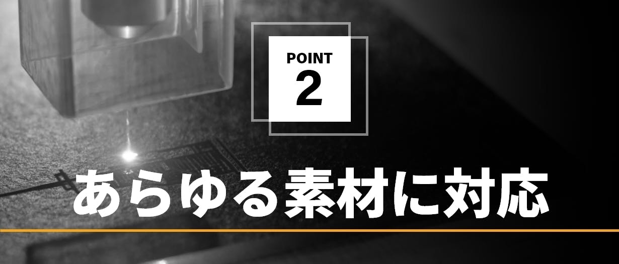 金属加工もできるハイパワーレーザーであらゆる素材の加工が可能に!細かく出力調整でき、柔らかい素材にももちろん対応しています。