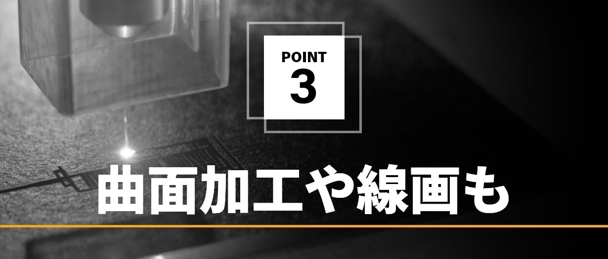 彫刻物の直径によってさまざまな大きさの曲面を加工することができます。指輪、ガラスコップ、セラミックコップ、缶、野球のバットなどの曲面の加工に対応しています。