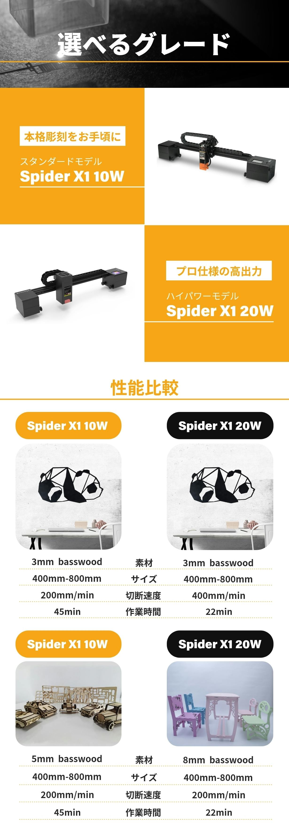 Spider X1は10W/20Wの高出力。※バージョンにより異なります。