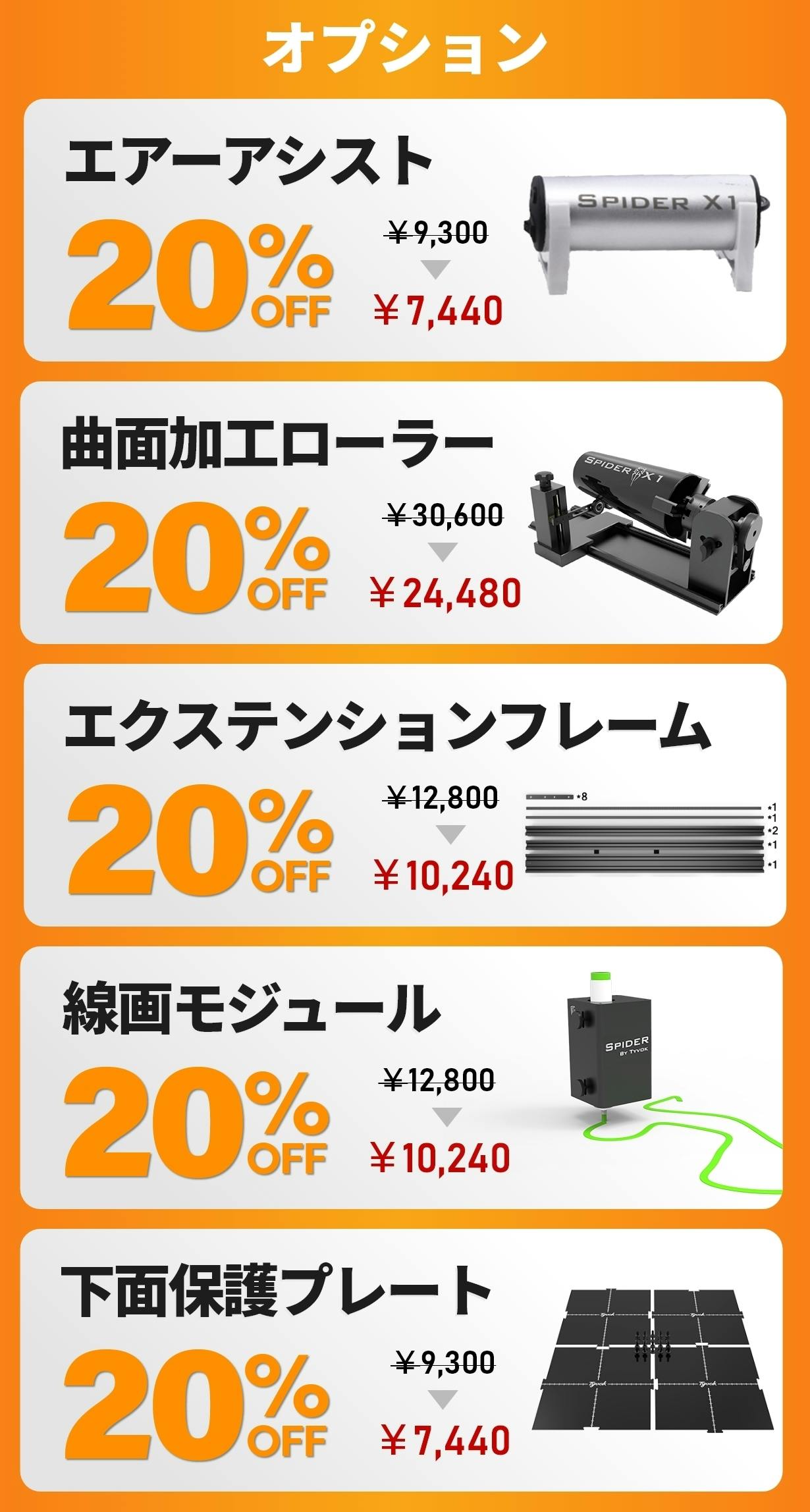 無制限のY軸と拡張可能なX軸により、今まで家庭用レーザー機では対応できなかった大判サイズの加工が可能になりました。これまで諦めていたクリエイティブも、Spider X1なら実現することができます!