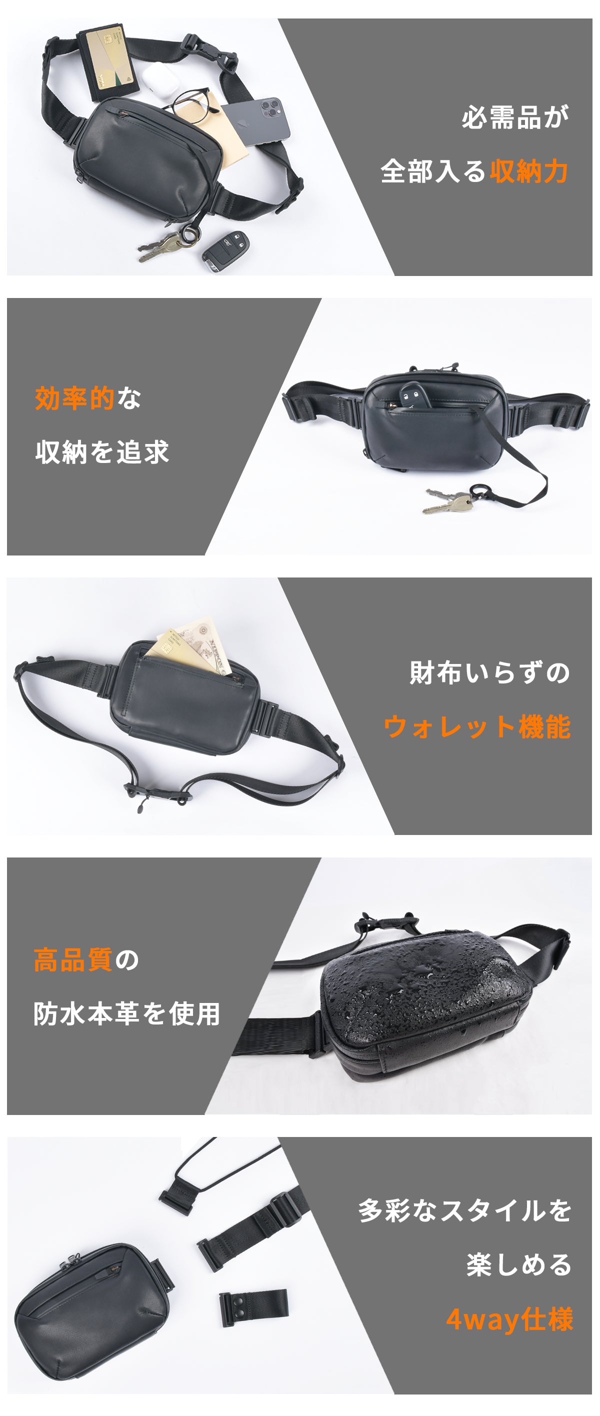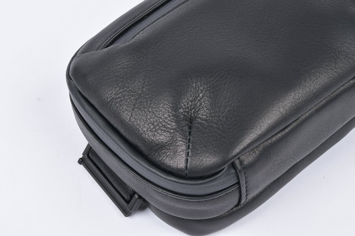 コンパクトサイズのミニバッグに収納力や機能性を持たせることを追求し、今回のウォータープルーフレザーミニバッグが完成しました。