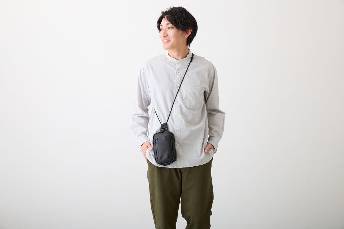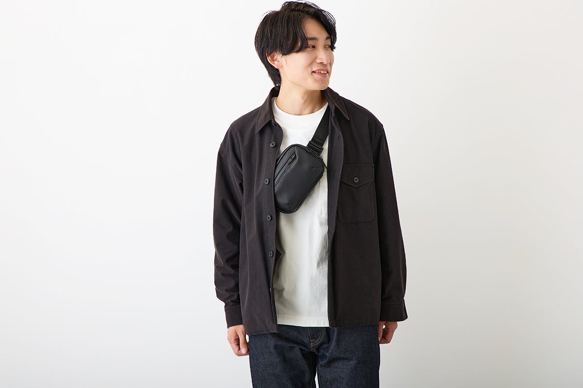 今回のウォータープルーフレザーミニバッグを作ろうと思ったキッカケは、デザイナーでもある私自身が30代中盤になり、これまで休日に好んで使っていたアウトドアブランドのナイロン製のミニバッグやサコッシュが似合わなくなってきたと感じたことでした。