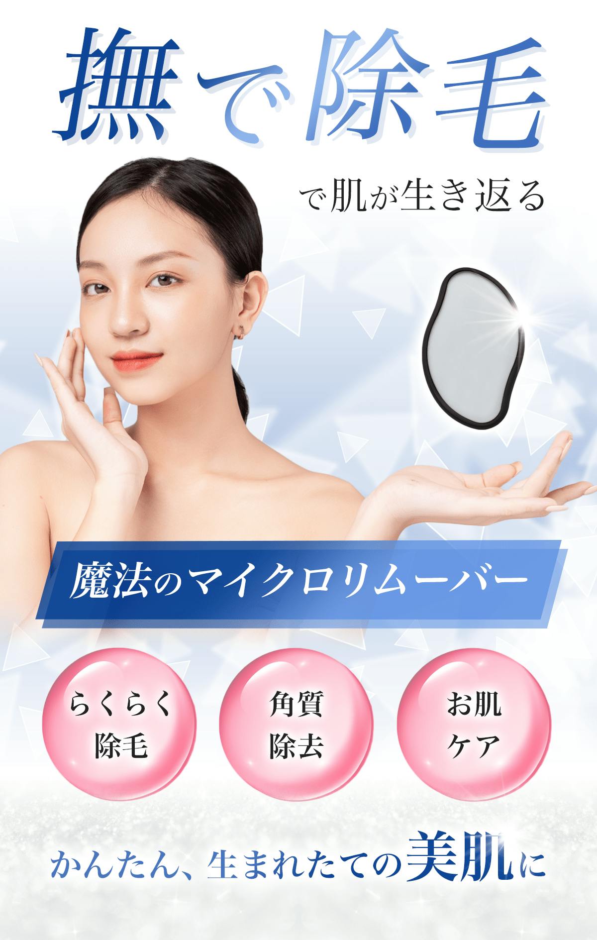 マイクロガラスを肌に優しく当てるだけ。除毛クリームやシェーバーより簡単で、コストパフォーマンスにも優れています。