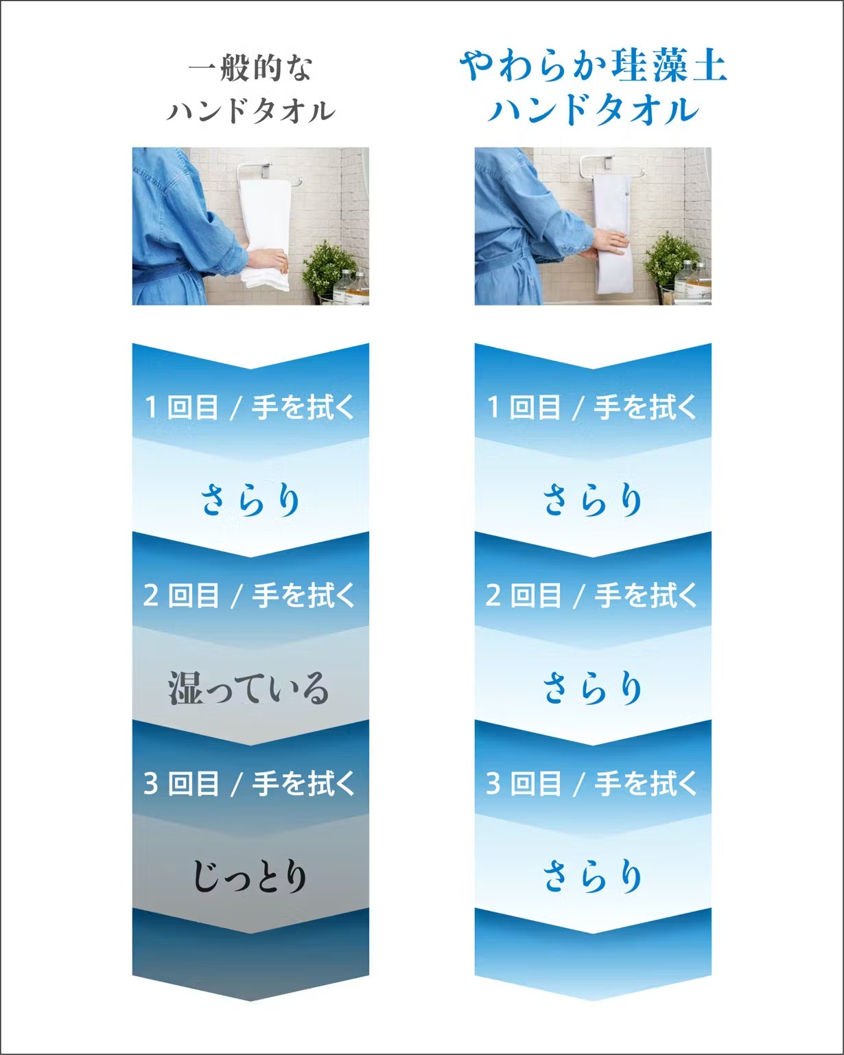 やわらか珪藻土ハンドタオルなら、いつもさらりと快適です。