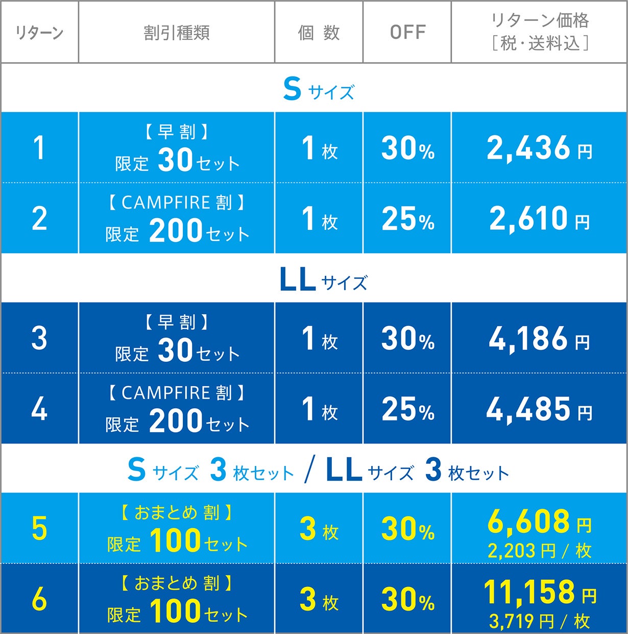 ビックFIRE優秀賞受賞に感謝を込めて、各サイズ3枚セットの【 おまとめ割 】をご用意しました。