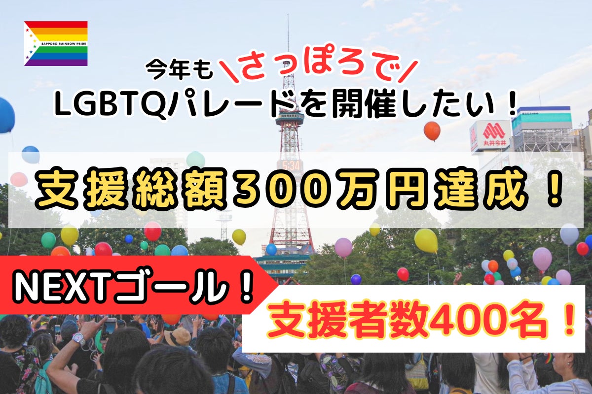 みなさまのおかげで目標金額300万円を超え3,304,389円ものご支援をいただきました!総支援者数は400人!ネクストゴールも達成することができました!本当に、本当にありがとうございます!!実は今回のクラウドファンディング。・実施期間、過去最短の1か月間・実施時期、過去最早の3月という今までよりも厳しい条件下で実施していたのですがなんと過去最高額、過去最高支援者数でプロジェクトを達成することができました!みなさま、本当にありがとうございました!!実行委員15名ひとりひとりがみなさまの応援の気持ち、期待の気持ちをしっかりと受け取りました!!改めて気持ちを引き締め、今年9月14日・15日のさっぽろレインボープライドの成功に向けて一生懸命頑張ります!ご支援いただいた方で郵送物がある方へはこれから心を込めて一つ一つ発送する作業を行います。到着まで今しばらくお待ちください。引き続き私たちの活動を見守っていただけますと幸いです!これからもよろしくお願いします!この度は本当にありがとうございました!!