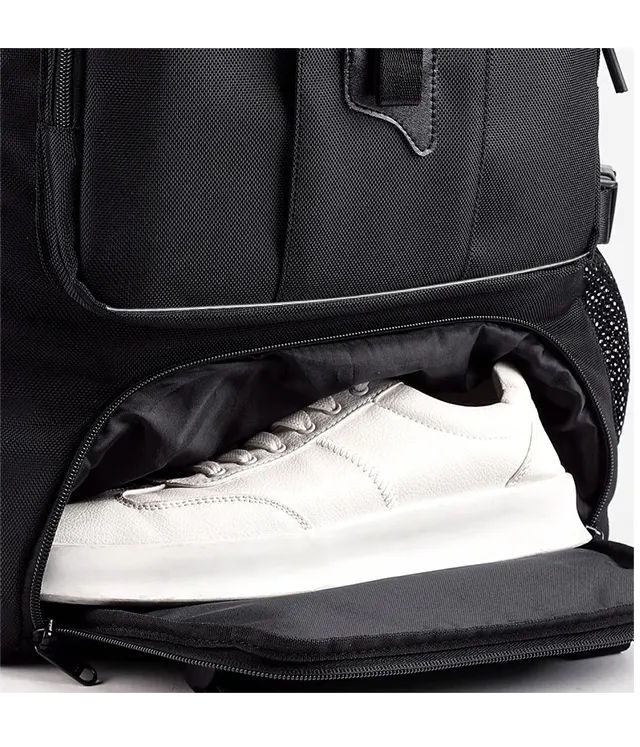 A:シューズが収納できるスペースになっています。メインコンパートメントと別空間なので、においや汚れがうつる心配もありません。シューズに限らず、お着替えや汚れ物を入れるスペースとして使うなど、使い方は色々ございます。