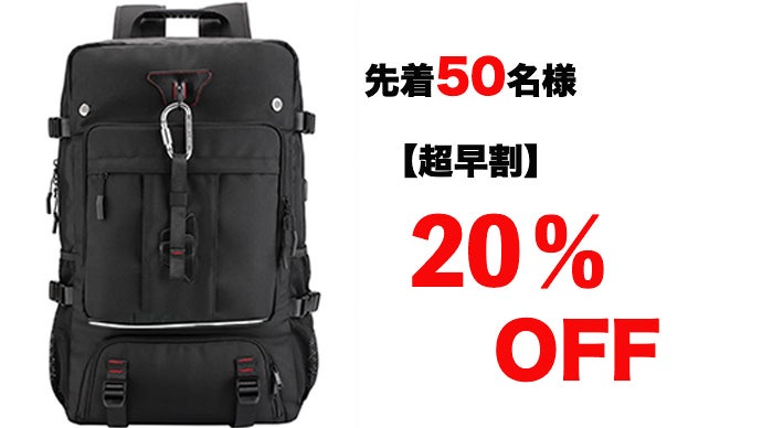 拡張機能により、最大約80L収納可能を実現しました。アウトドア&もしもの時の防災バッグ活用で最大限収納ができます。このバッグ一つあるだけで、安心です。