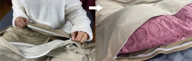 ※下部に全開ファスナーがございます。図のようにお布団を入れてください。