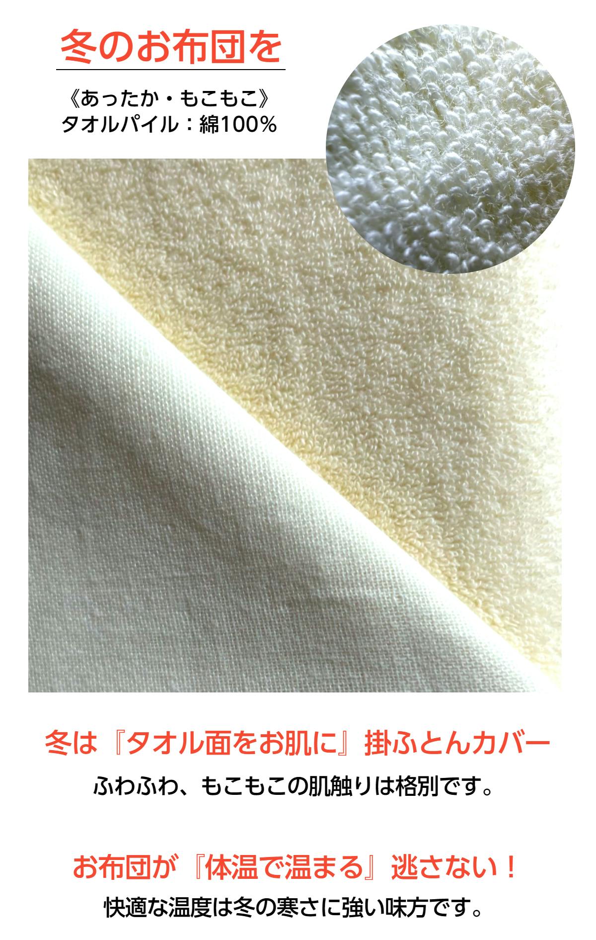 冬は、タオル面をお肌に、掛けふとんカバーとしてご使用ください。