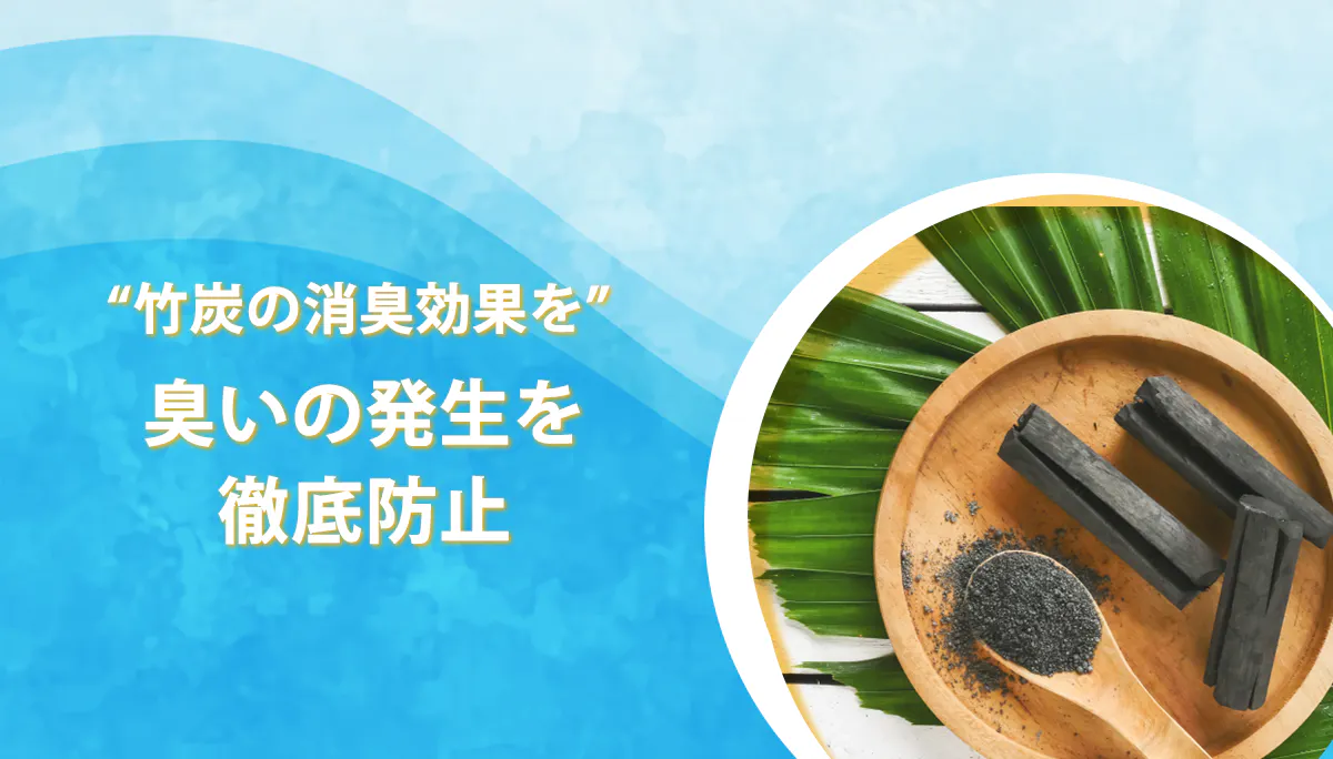 竹炭だけではなく、ニオイの元凶となるアンモニアやトリメチルアミンの分子を破壊する効果がある銅をインナーカバーに使用。