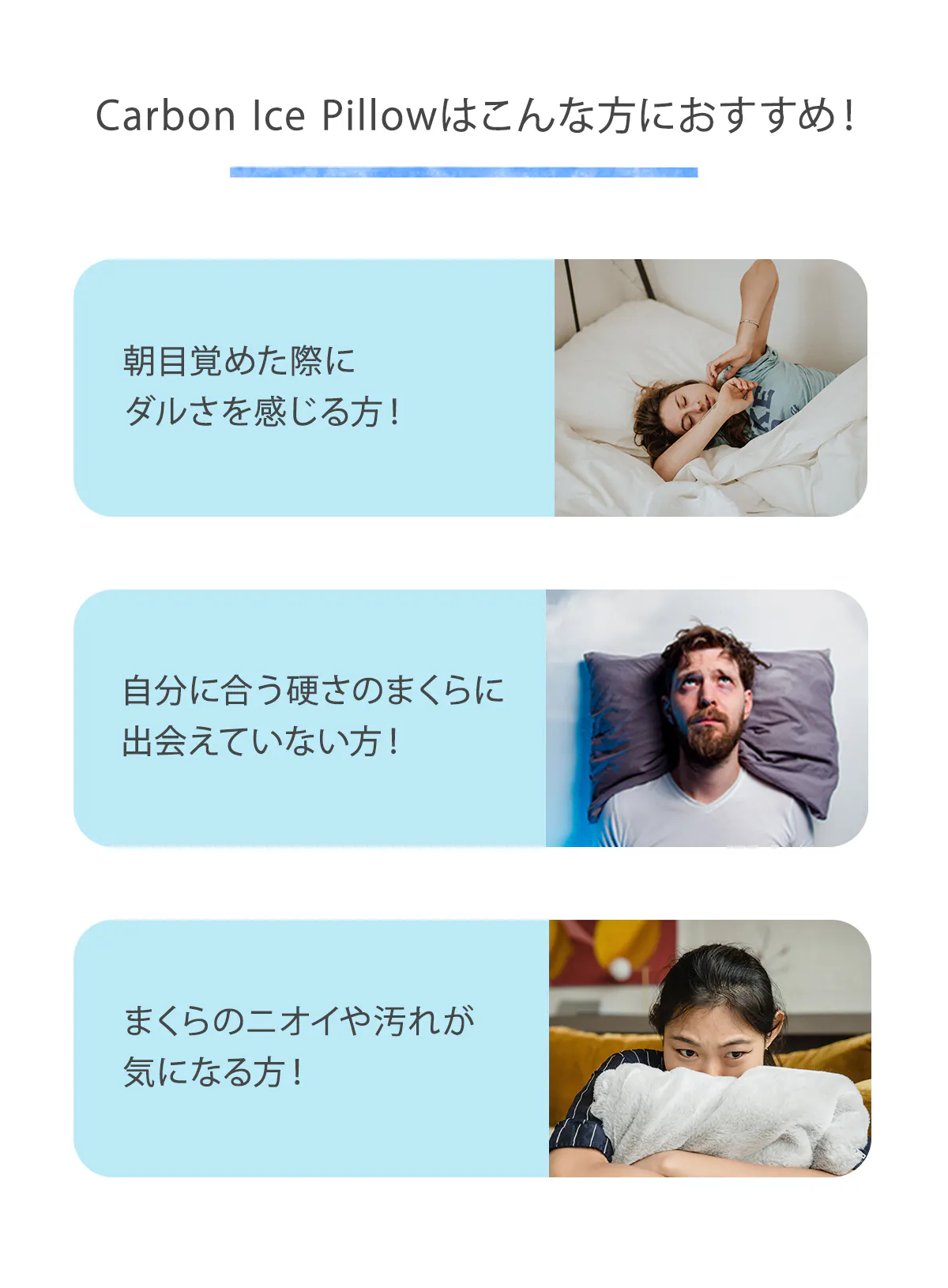 【Carbon Ice Pillow】は睡眠姿勢を整えることで、あなたの安眠、快眠をサポートします。
