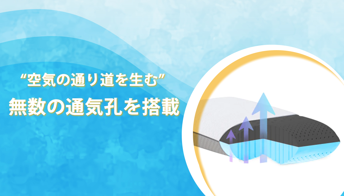 【Carbon Ice Pillow】の大切なポイントとして押さえておきたいのは、従来のまくらにはないすぐれた通気性。