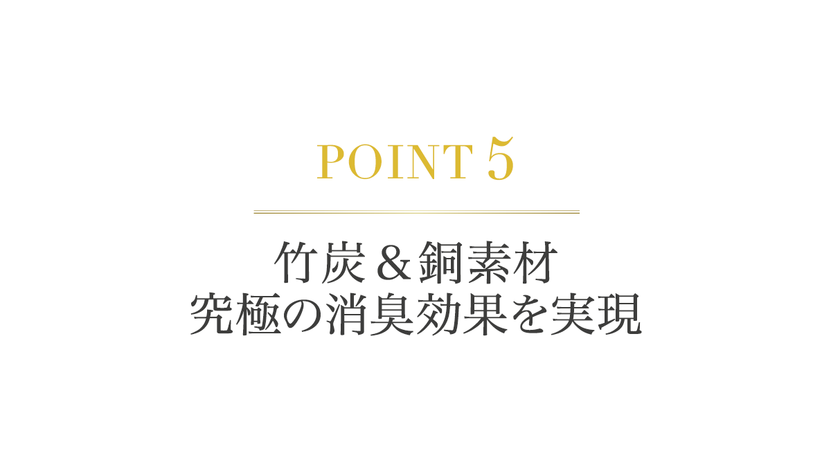 竹炭だけではなく、ニオイの元凶となるアンモニアやトリメチルアミンの分子を破壊する効果がある銅をインナーカバーに使用。