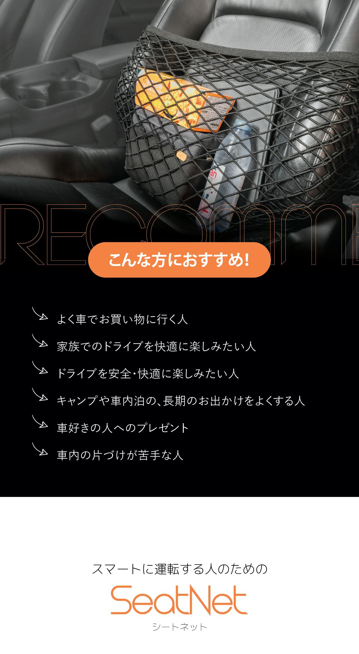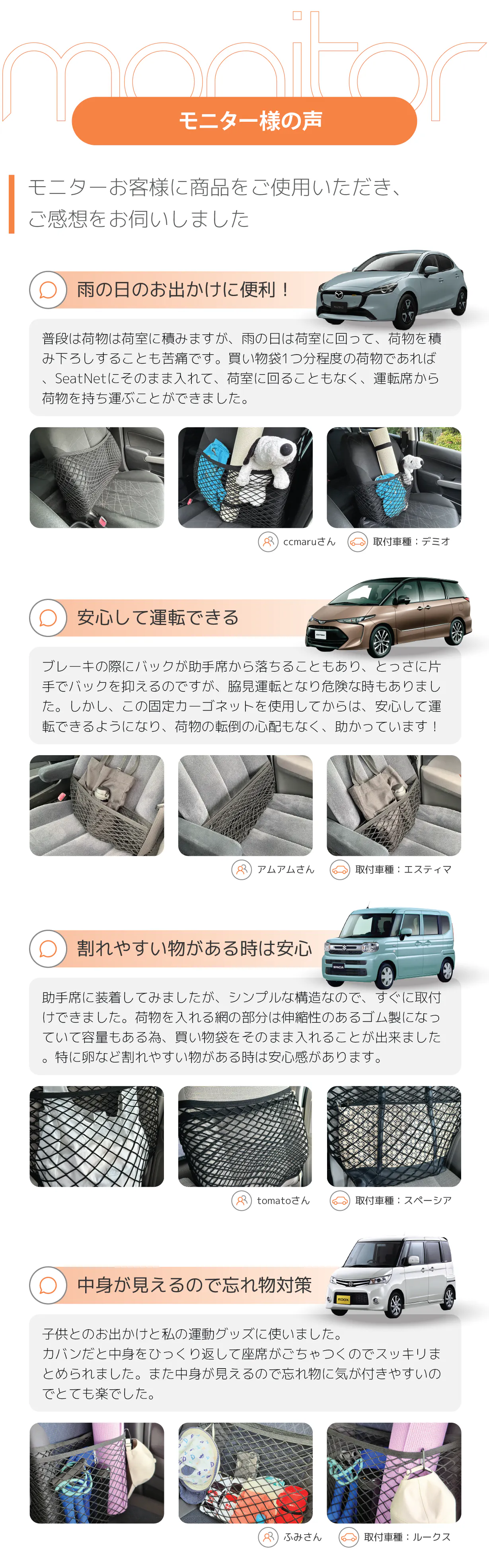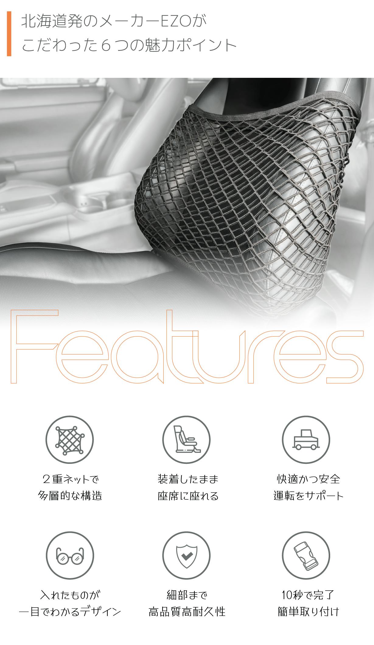 こんなみなさまの「ちょっと不便」を快適にするのがEzo 車内収納固定ネット。