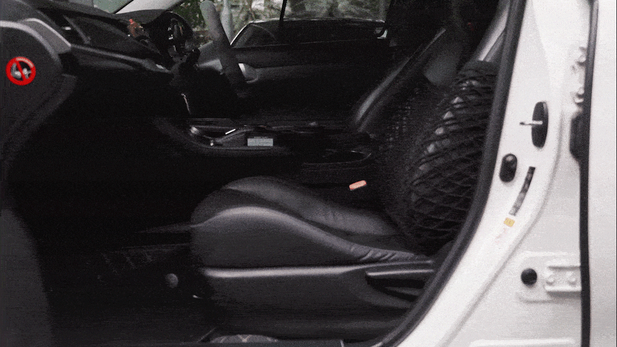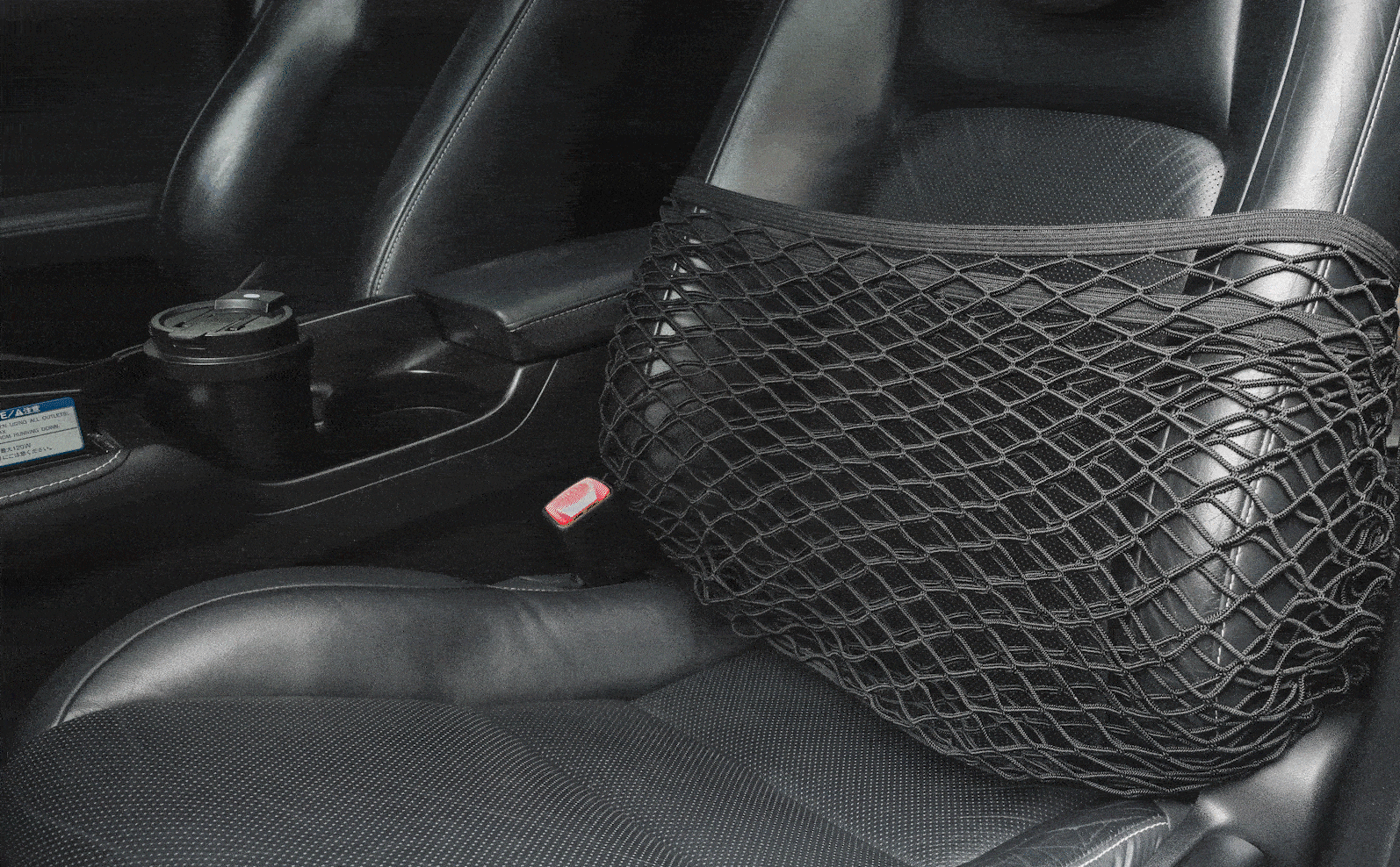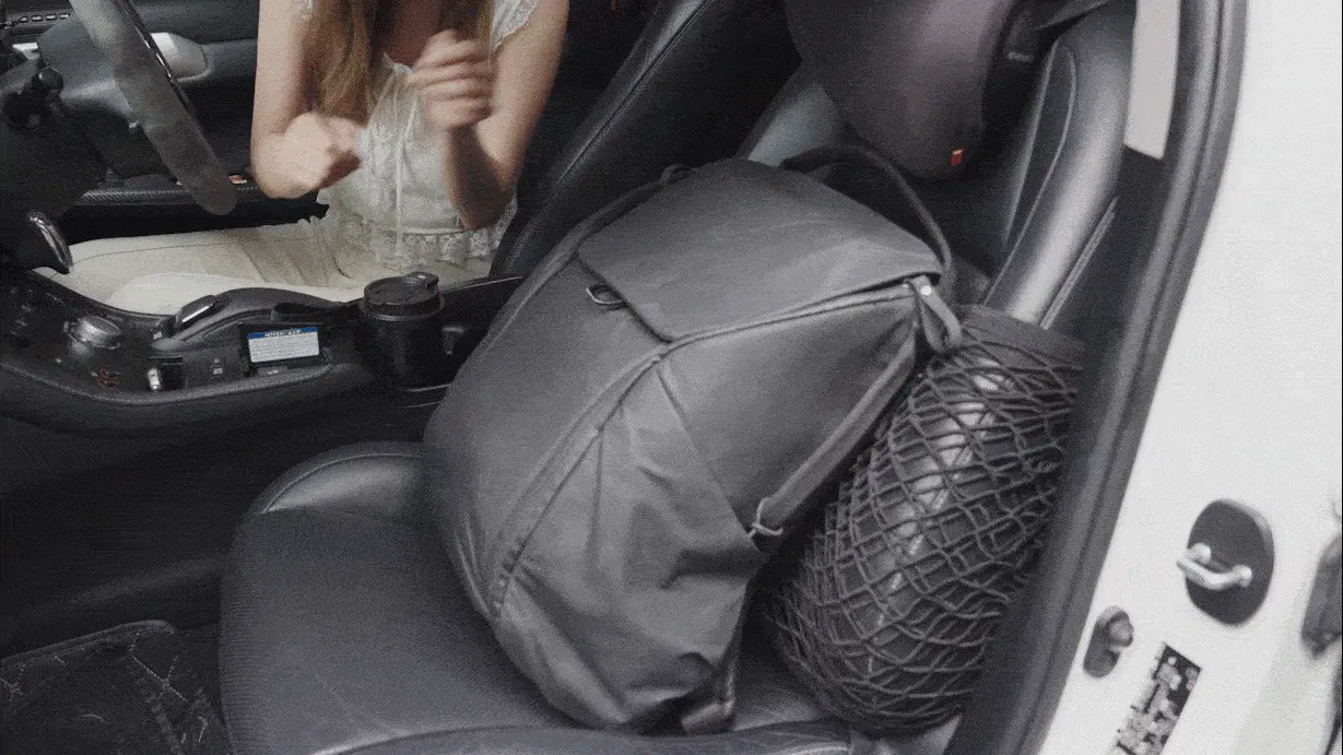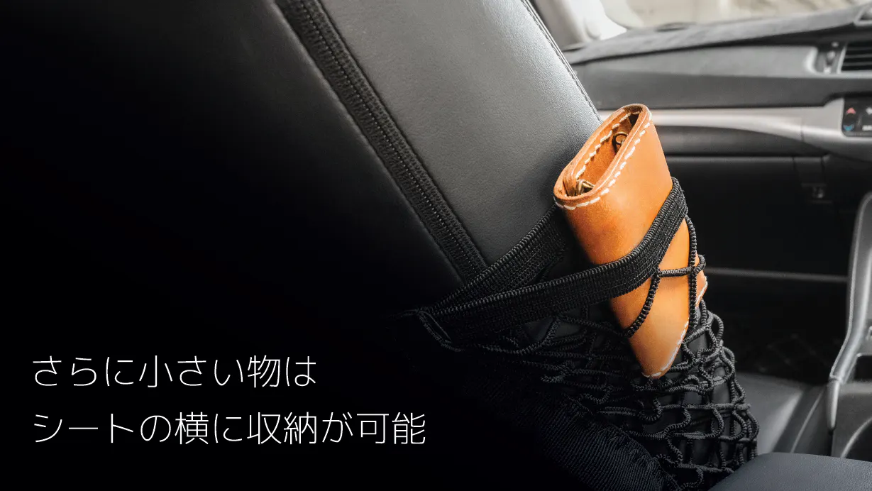 Ezo車内収納カーゴネットと、助手席の背もたれ間に荷物を置くことでしっかりと荷物が固定され、急な衝撃によって座席から荷物が落ちるのを防いでくれます。