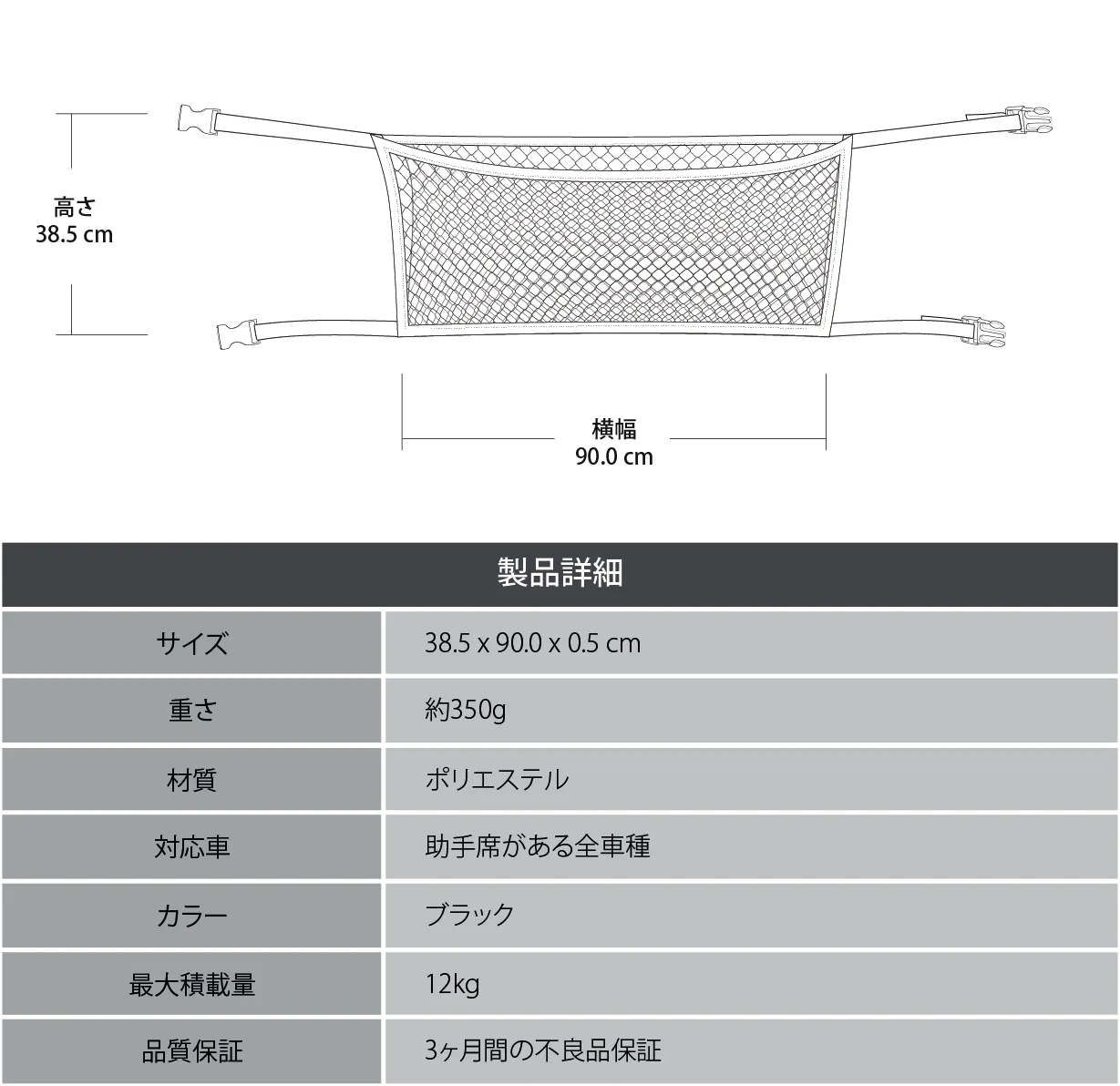 Ezo車内収納カーゴネットは、伸縮性のあるポリエステル素材のメッシュ生地を使用し、ネットの上下に強力なゴムを施しました。