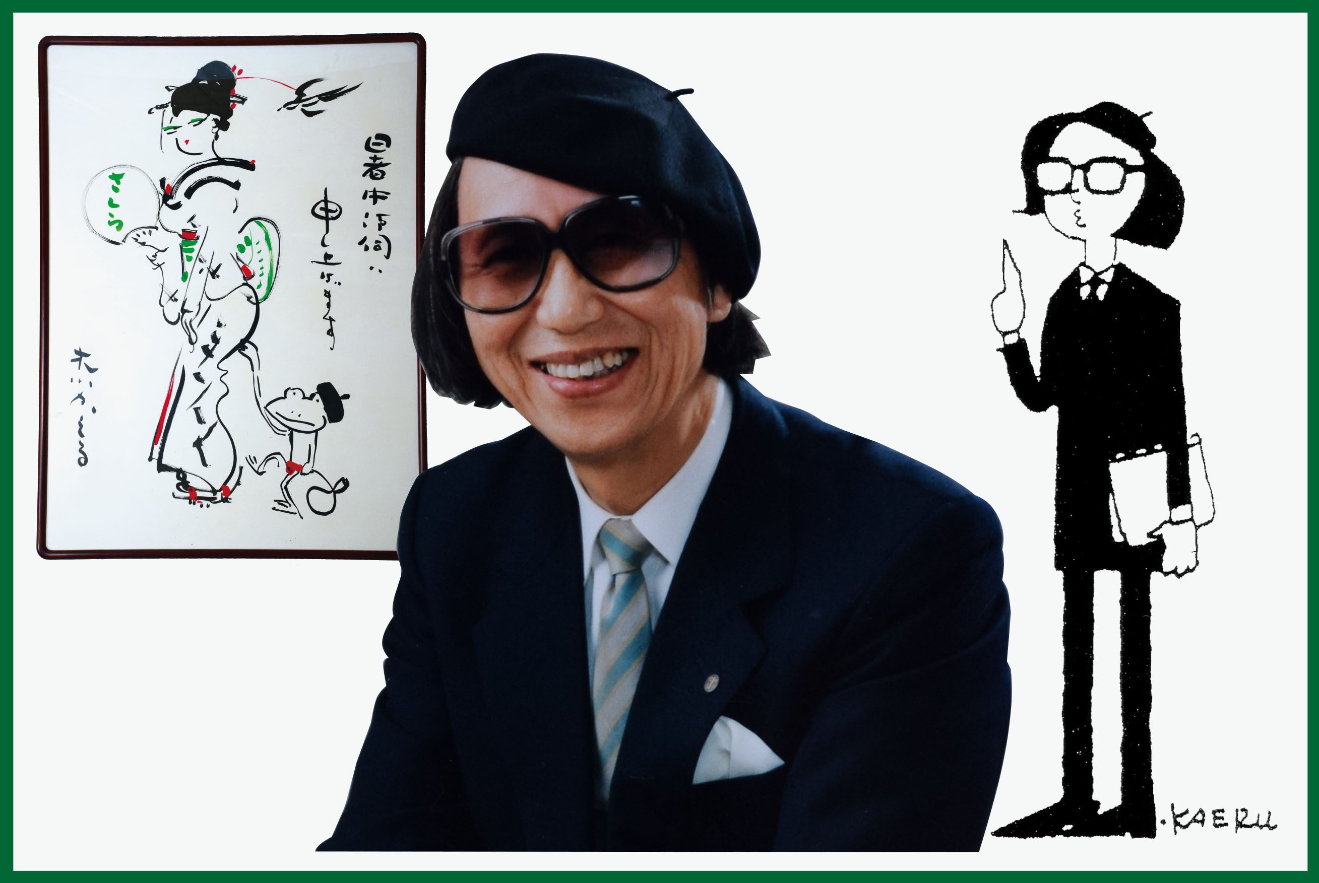 1964年に舞台経験を買われ吉本興業に入り、虚弱な子ども時代についたあだ名「かえる」を芸名にし、寄席の舞台で音楽に合わせて即興で漫画を描く「ジャズ漫画」と言われる独自の分野を開拓しました。
