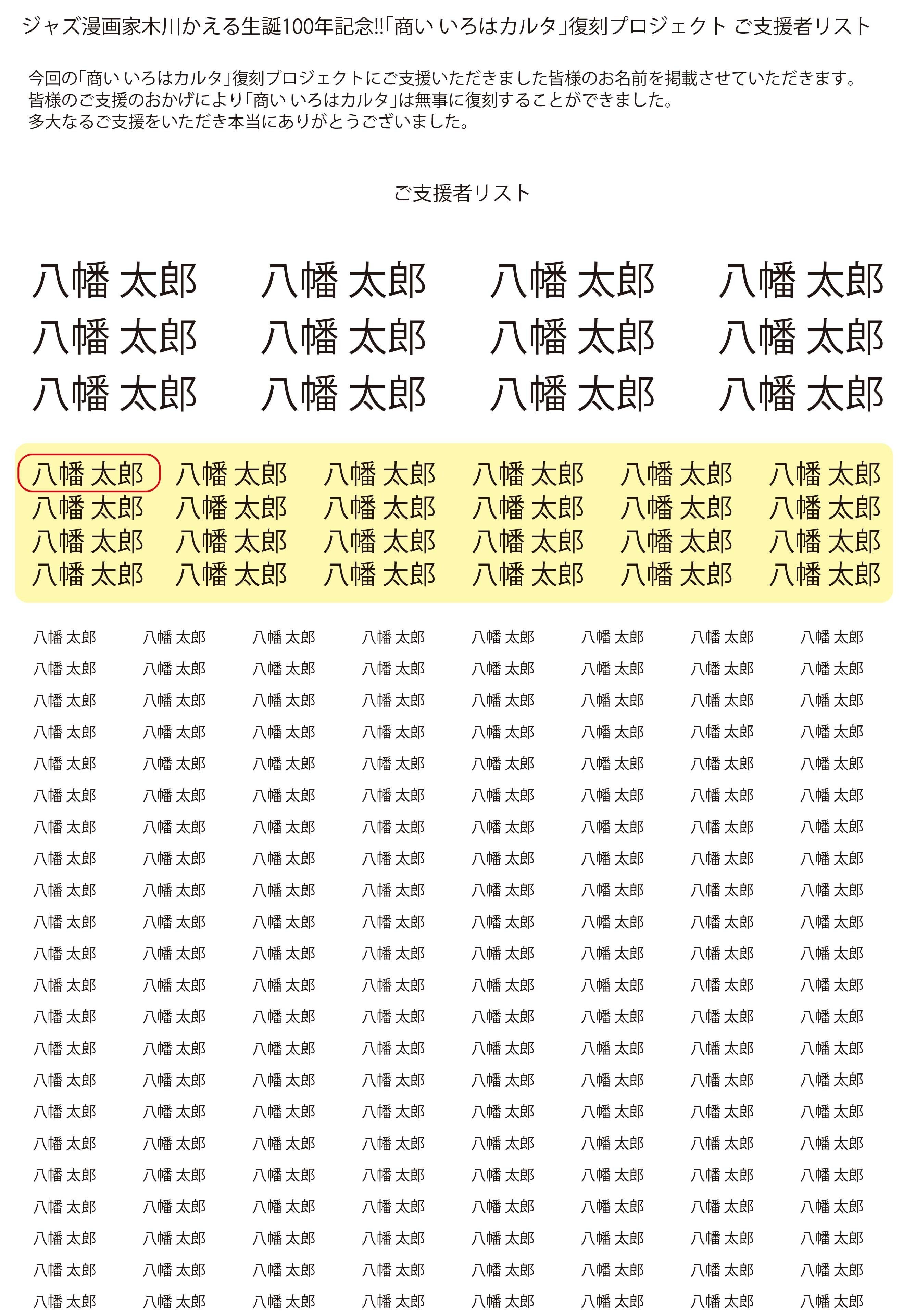 ・カルタの箱に封入する支援者リストにお名前を記載(小)