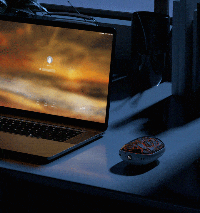 暖炉をヒントにデザインされた雰囲気ライトを搭載、木炭が徐々に赤くなり、温度が上がっていくのを感じられるようになっています。