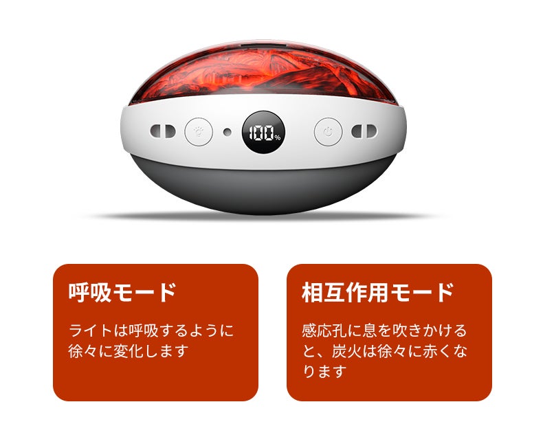 2種類の点灯モードで、人間と機械のインタラクション(相互作用)を実現し、本物の薪ストーブの暖房効果を表現しています。