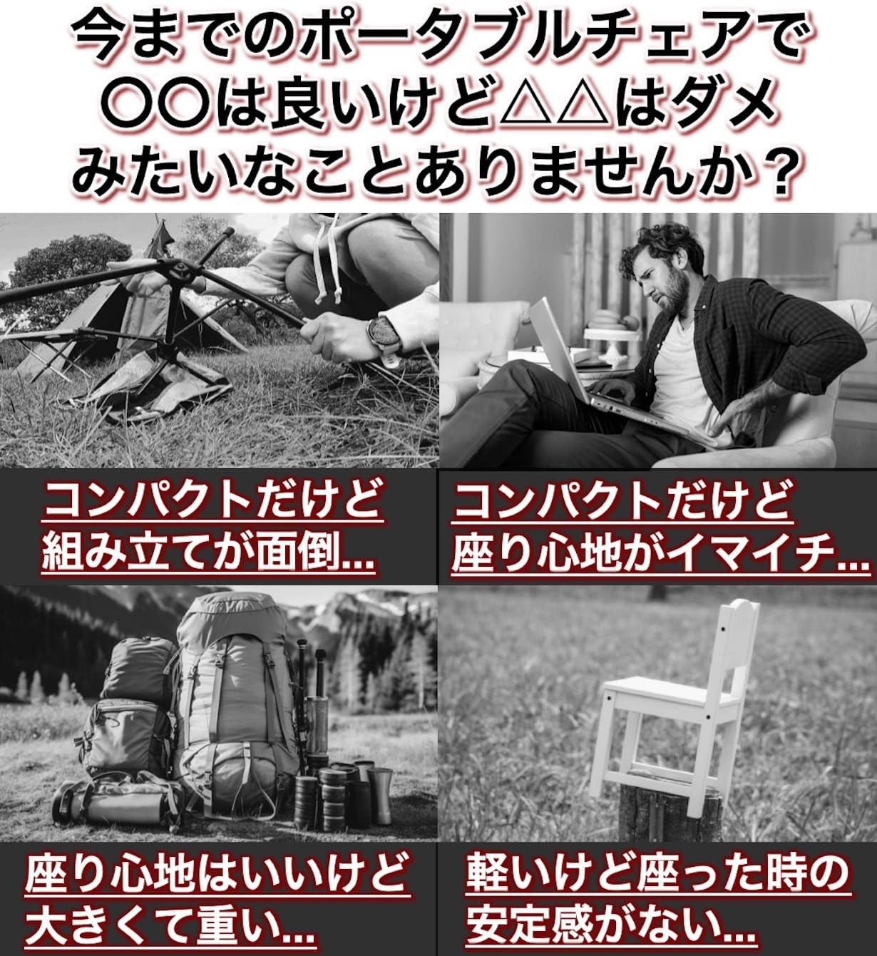 NTL Chairはそんなポータブルチェアの“あるある”を解決した新世代のポータブルチェアです!