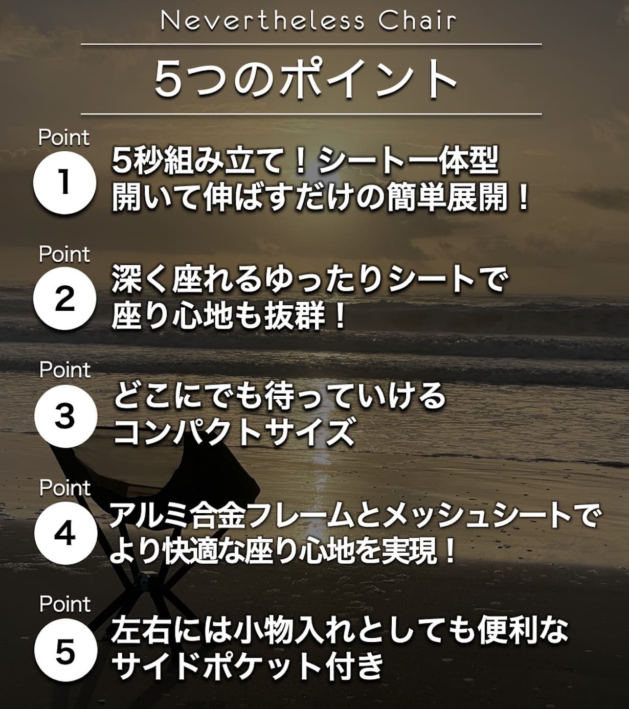 私自身アウトドアや夏フェスなどが好きで、今まで自分の求める理想的なポータブルチェアを求めてまいりました。