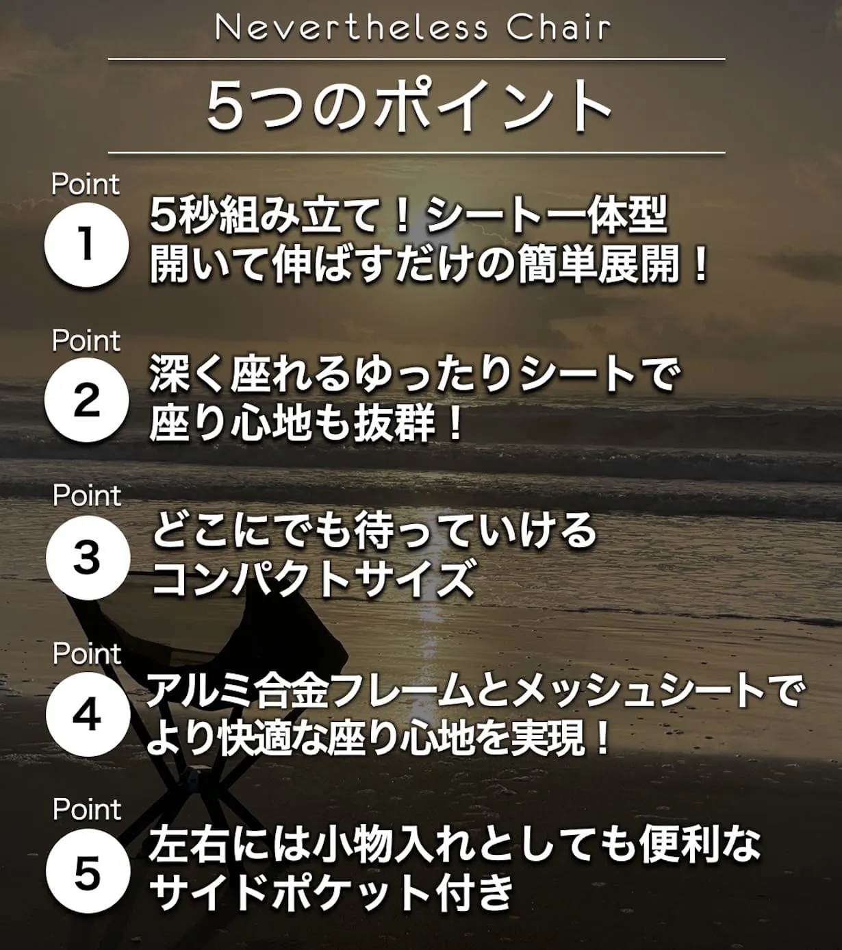 NTL Chairはそんなポータブルチェアの“あるある”を解決した新世代のポータブルチェアです!