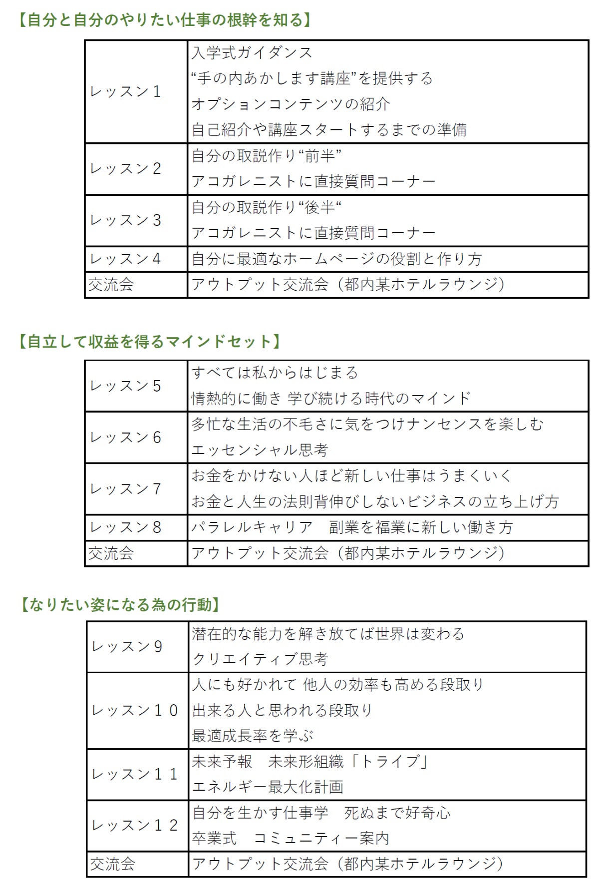 好きなことを仕事にするため、好きなことを見つけるための講座:12回