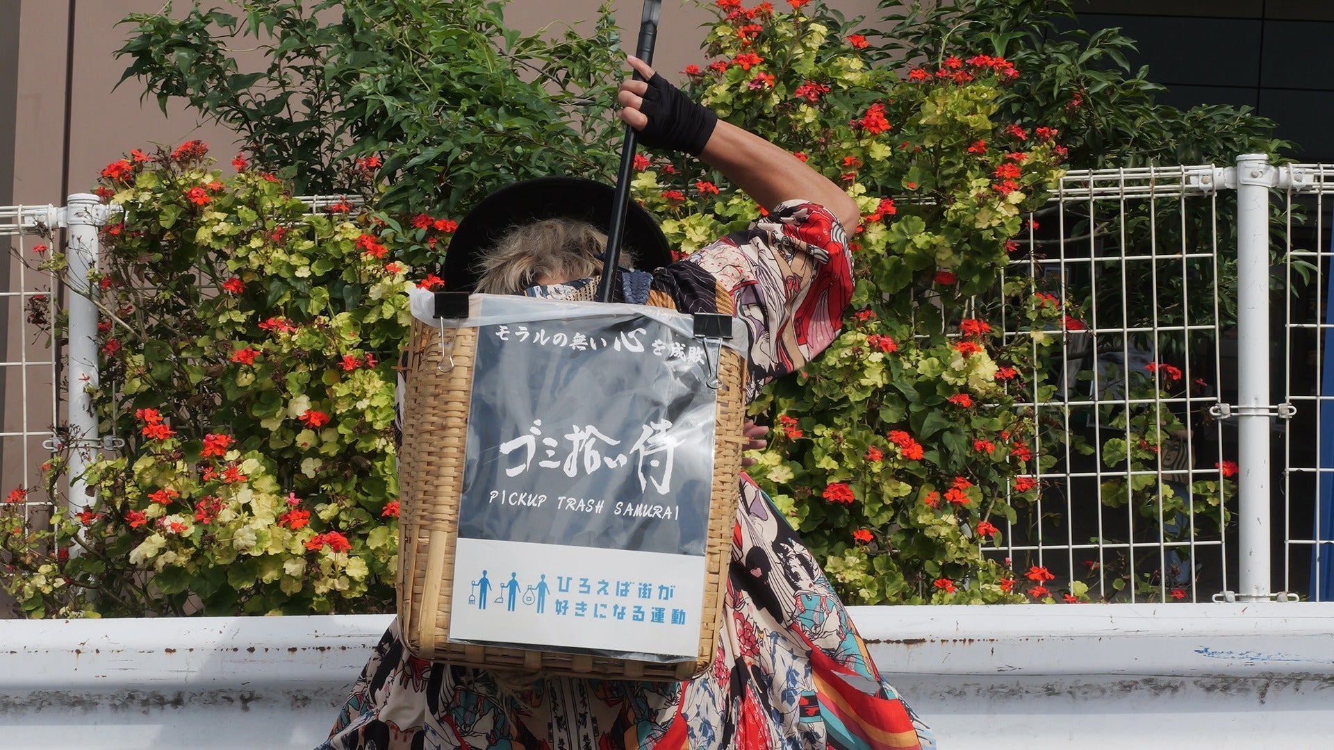 「ゴミ拾いカゴ」を背負うことで単に目立つだけでなく、