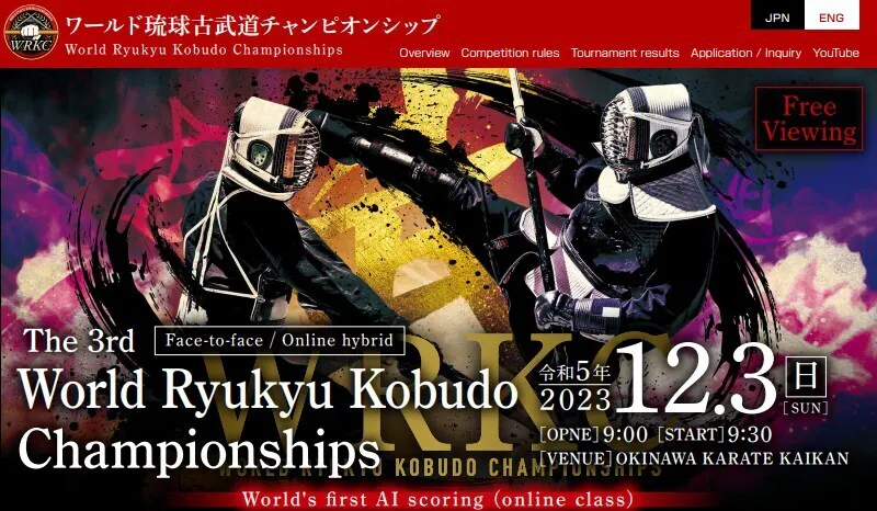 そして今年も琉球古武道の更なる世界への普及を目指して、12月3日(日)に沖縄空手会館にて第3回ワールド琉球古武道チャンピオンシップを開催致します。今回も対面+オンラインによるハイブリット型の世界大会となりますが、大会のさらなるパワーアップを図るために一部の競技に型のAI判定を導入いたします。