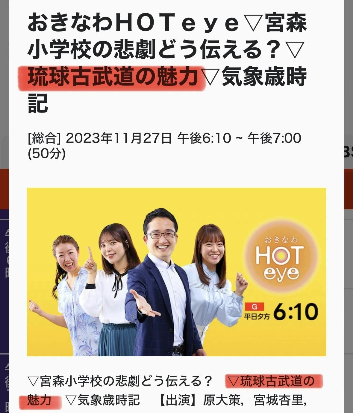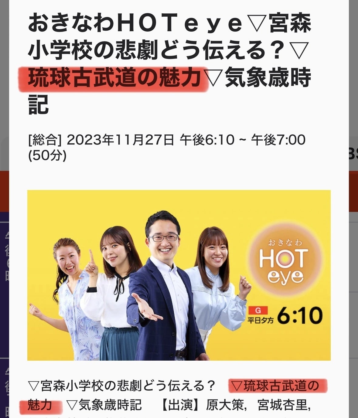 本日、NHK沖縄18時10分〜18時59分「おきなわHOTeye」で9分ほど『琉球古武道の魅力』について放送します!第3回ワールド琉球古武道チャンピオンシップ、世界初のAI採点について取材されました。ご覧下さい。