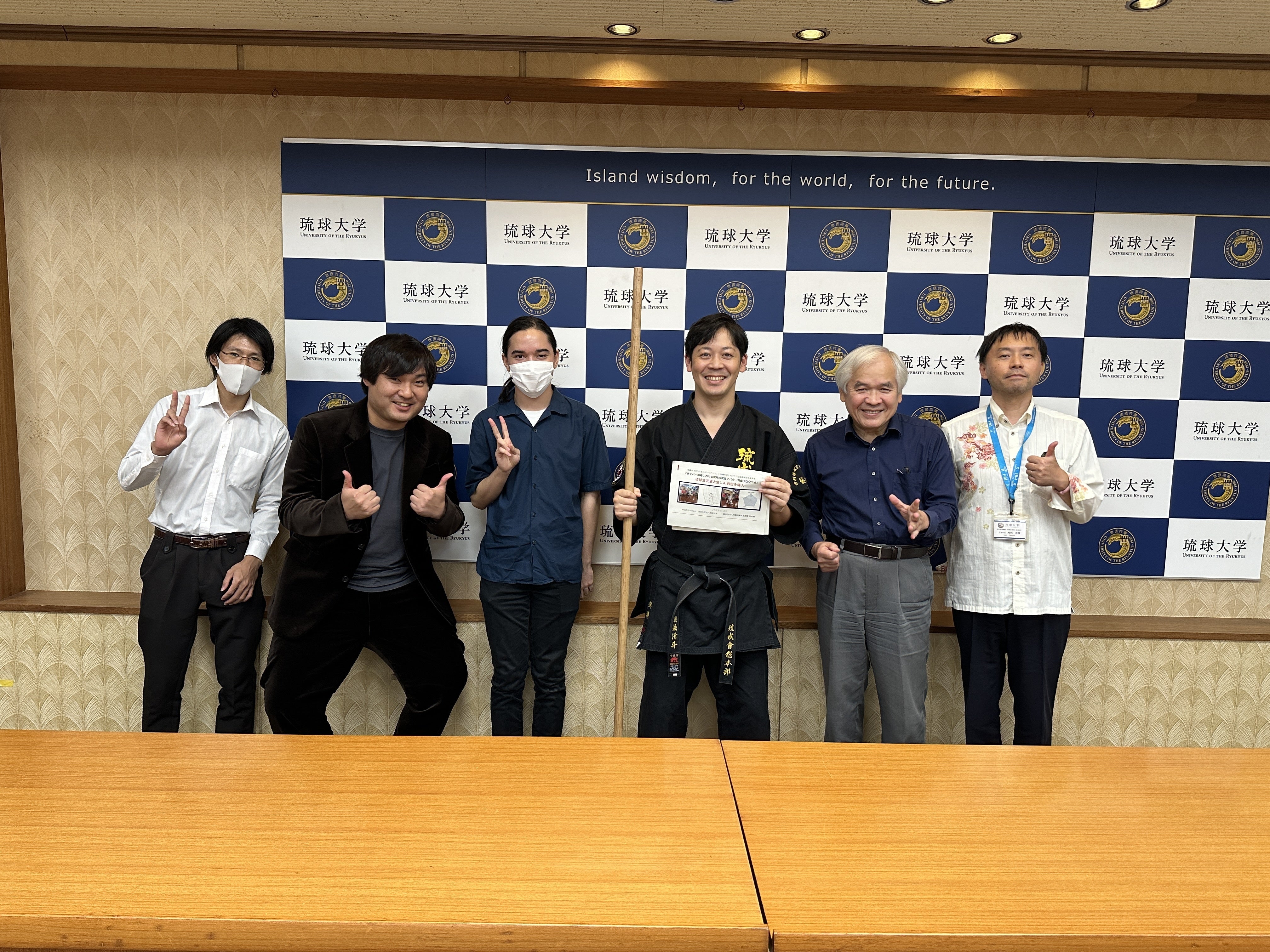 昨日、琉球大学学長記者懇談会にて第3回WRKC大城の棍AI採点について報告!『サイバー道場における琉球古武道アバター育成プログラム』事業のひとつ「琉球古武道大会にAI判定を導入」では琉球大学工学部と提携し、大城の棍型動画をAI採点していただきました。師範の動きと比べて5項目を点数化し順位を決定!結果は12/3(日)12時にYouTubeチャンネルWRKC事務局で発表します!お楽しみに!