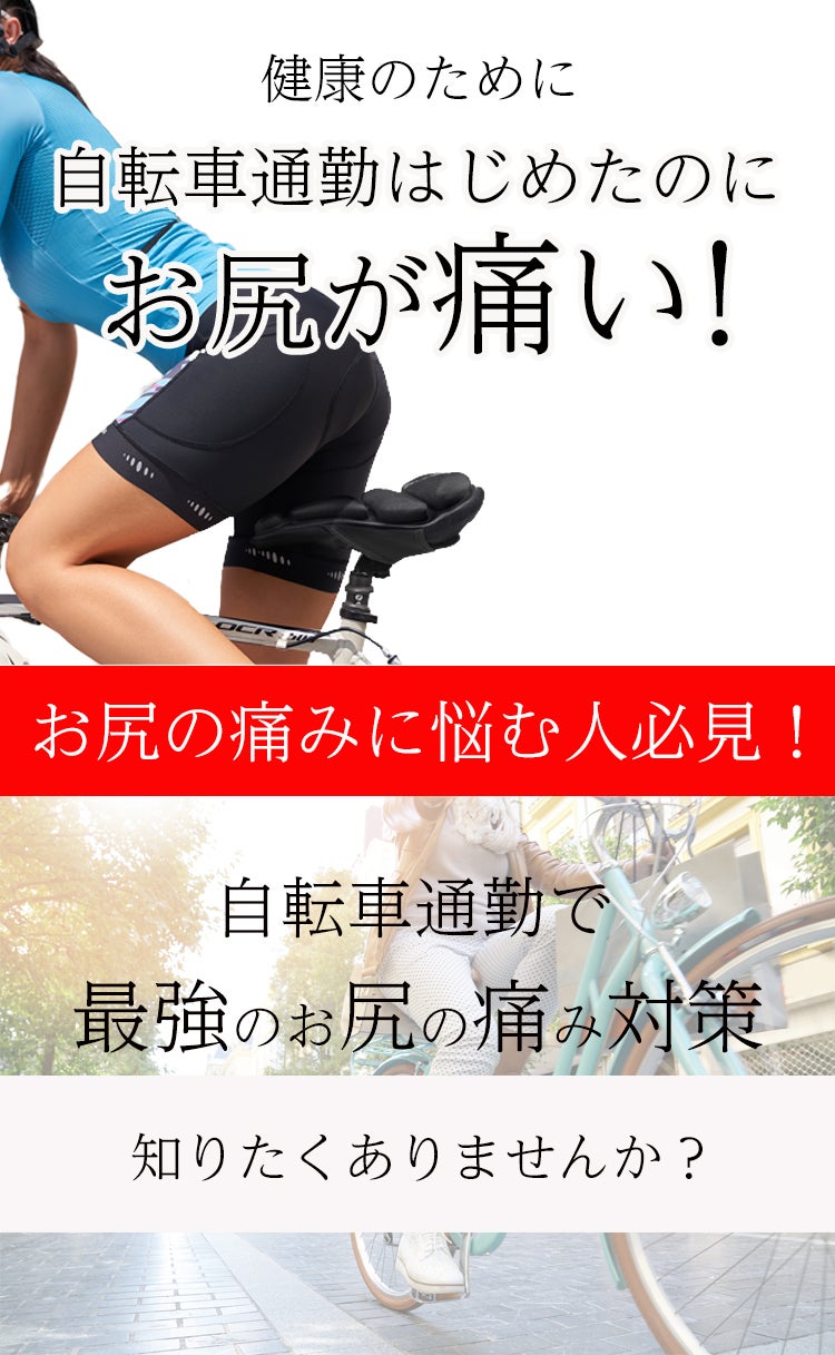 通勤快尻は、お尻の痛みについて、サイクルパンツよりも簡単な対策がないかと探していたところ、エアーサドルカバーを発見して試してみたところかなり良かったので、今回、販売して同じ悩みを持つ方に提案したいということに。