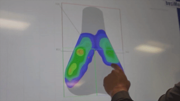 赤い部分か無くなり圧力が分散しています。