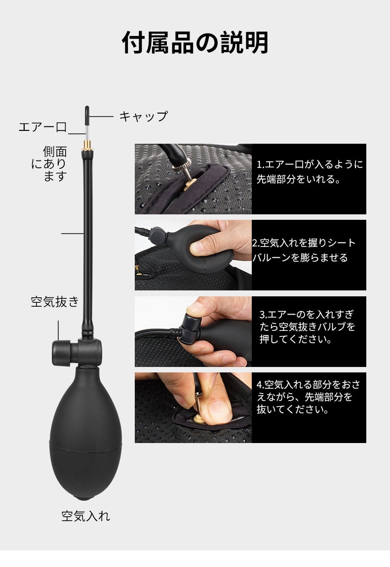 エアバック内の空気の量は自分の好みで調整可能!