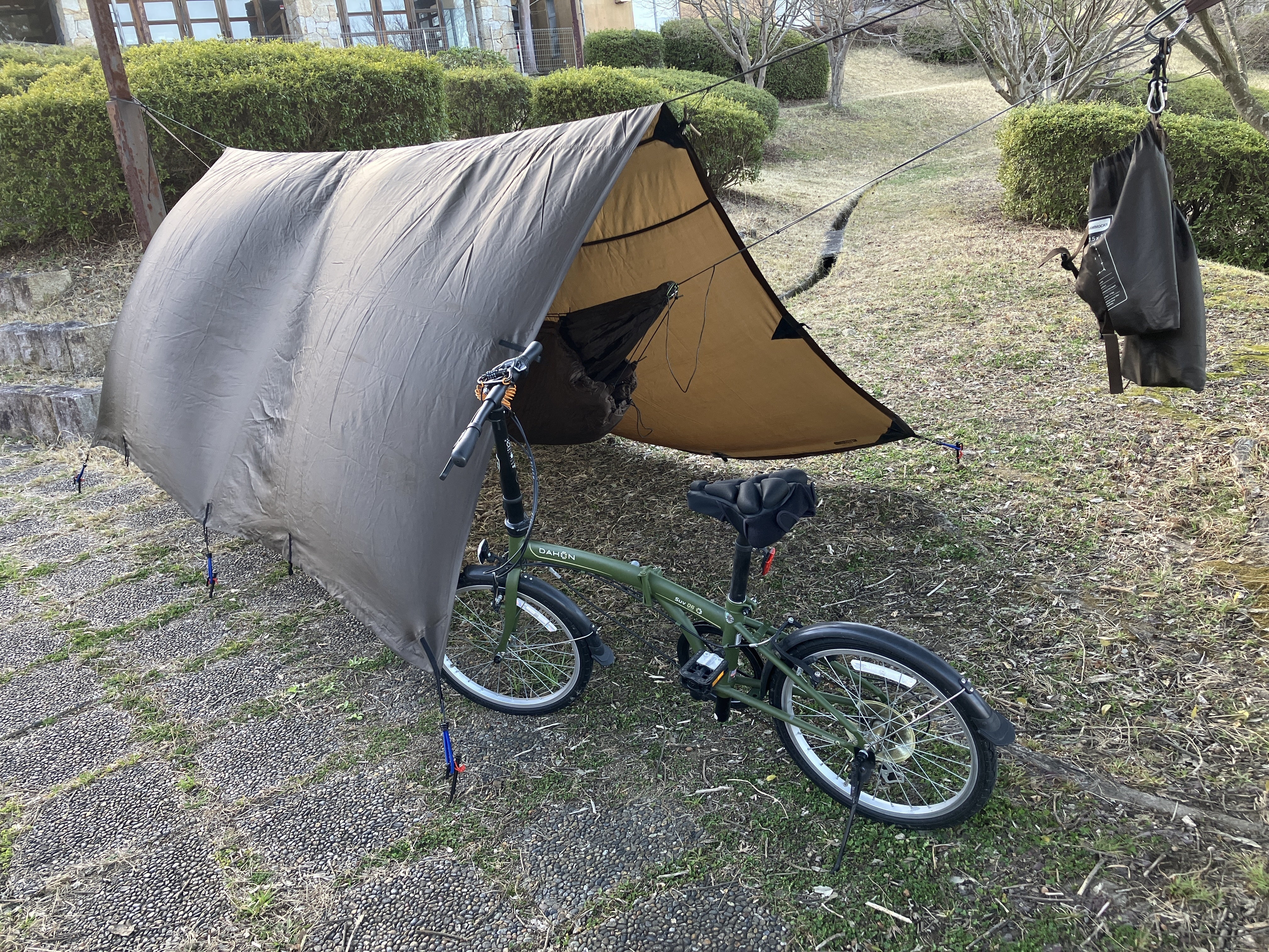 第2弾は、折りたたみ自転車のサドルに使えるタイプの開発だったので、通勤快尻をつけて、ハンモックキャンプに行ったりもしました。