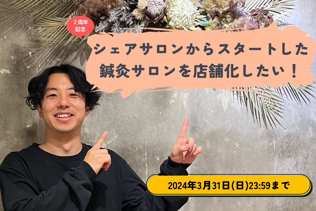 今回、2周年に伴いシェアサロンから始めた「鍼灸サロンFULL」をより充実したサービスを提供したいと考え新たなステージへ進むべく店舗化クラファンに挑戦することにしました!
