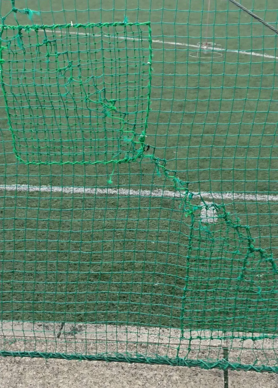補修を繰り返した防球ネット